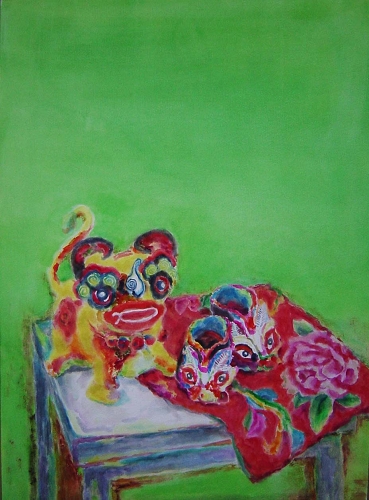 蔡瑞蓉《红花布静物二》