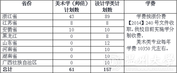 漫画柜 位于浙江省南部美丽的沿海城市温州。学校现有6个一级学科硕士点,40个二级学科硕士点,有教育硕士、工程硕士(机械工程领域、建筑与土木工程领域、环境工程领域)2个硕士专业学位门类。先后被确立为国家创业型人才培养温州模式创新实验区、全国创业教育示范院校、首批国家级“大学生创新创业训练计划”高校、首批“全国高校创新创业50强”、首批“全国深化创新创业教育改革示范高校100强”、国家级众创空间、教育部“卓越工程师教育培养计划”试点高校和浙江省教师教育基地,形成“教师教育”、“工程教育”和“创业教育”等办学特色。一、招生计划 二、招生省份及计划数(具体计划数以各省考试院最后公布为准) 三、报考形式和条件我校美术与设计类专业考试均采用各省统考成绩,不另行组织校考。报考对象和条件参照各省美术类统考安排和要求执行。 四、录取条件报考漫画柜 的音乐考生(使用联考成绩),必须符合以下条件:1.参加生源省的艺术联考并取得合格证;2.高考文化成绩达到生源省划定的艺术类分数线。符合上述要求的考生,漫画柜 将采取以下方式进行录取:(一)分省按综合分从高到低进行排名录取,综合分折算方式如下:综合分换算方式:文化总分(高考总分按750分制计)×50%+专业成绩(总分折合100分制计)×7.5×50%。备注:江苏省综合分换算方式:文化总分(高考总分按440分制计)×50%+专业成绩(总分折合100分制计)×4.4×50%。(二)英语单科成绩要求 浙江省江苏省其他省≧60分≧40分≧50分 五、漫画柜 及专业介绍(一)漫画柜 漫画柜 简介漫画柜 前身是原温州师范学院美术系(设立于1984年)和原漫画柜 服装艺术设计专业(设立于1988年),属国内同类院校中较早创办美术、设计、服装类专业的院校之一。学院现有全日制本科生980余人,硕士研究生20人。教职工72人,其中,教授7人、副教授24人,博士5人、硕士46人。 学院设有美术学、视觉传达设计、环境设计、服装与服饰设计、服装设计与工程五个本科专业和一个美术课程与教学论硕士点。2003年服装设计列为省重点建设专业,2008年艺术设计专业(鞋靴设计方向)列为省重点建设专业。2017年服装与服饰设计专业被评为浙江省特色专业,艺术设计(鞋靴、服装)为校级重点特色学科(B类)。2012年服装设计与工程专业被列为教育部“卓越工程师计划”试点专业。《服装立体裁剪》、《鞋靴结构设计》被评为国家级精品课程,2013年2门课程成功入选国家级精品资源共享课。服装立体裁剪教学团队为浙江省优秀教学团队。 学院与英国德蒙福特大学、意大利新美术学院、欧洲设计学院、韩国及台湾等高校艺术学院建立合作交流项目,联合培养交流生、交换生,每年暑假定期组织专业设计营活动。近年来,师生作品获国际国内展赛大奖20余人次,赢得了良好的学术影响和社会效果。经过全体教工多年的努力,教学质量、师资力量、人才质量、科研创作水平不断提高,社会声誉逐年提升,学院已成为一所融纯艺术专业、设计应用专业于一体的高等艺术学院。(二)学院专业(方向)简介美术学(师范):培养能够适应社会主义现代化建设和教育发展需要,德、智、体全面发展的能在中小学进行美术教学和教学研究的教育工作者。 主要课程:教育学、心理学、素描、油画、水彩、山水、花鸟、人物、版画、书法、中外美术史、美术概论、透视学、解剖学、中学美术教学法等。 视觉传达设计:培养具备视觉传达设计专业的系统基本知识,注重艺术创造性思维及能力,能在学校、设计公司、广告公司、电视媒体、报社、数字媒体单位、品牌企业等企事业单位从事品牌设计与推广、传媒研究、视觉表现研究、数码交互设计、广告设计、展示设计等工作的应用型高级人才。 主要课程: 计算机辅助设计、书籍装帧设计、企业形象系统设计、广告设计、广告摄影与摄像等。 环境设计(环境艺术设计):培养具备室内外环境艺术设计专业的系统基本知识,能在教学科研机构或者专业设计部门、设计公司以及其它企事业单位的生产经营和管理部门从事实际应用、开发和设计工作的高级专门人才。 主要课程: 计算机辅助设计、室内设计、景观设计、娱乐餐饮设计、宾馆设计、居室与办公空间设计等。 环境设计(室内与产品设计):培养具有创新精神、创业能力和社会责任感,具备工业产品设计基础理论和应用技能、宽广的文化与科学知识,能在工业产品设计部门、工业产品制造企业、产品设计策划与咨询行业从事产品造型设计、产品创新研发等工作的应用型高级专门人才。 主要课程:素描基础、平面构成、色彩构成、立体构成、产品快速表现、设计概论、计算机辅助设计(平面、效果图)、模型制作、材料与工艺、基础设计、人机工程学、产品快题设计、产品设计(一至五)、专题创意设计(一至二)。服装与服饰设计(服装设计):培养具备服装艺术设计创新思维,熟练掌握服装造型与结构设计原理以及计算机辅助设计技能,能从事服装设计、品牌策划和服装研究等方面的高级专门人才。主要课程:服装材料学、时装绘画、服饰色彩、服饰图案、图形软件及其应用、女装设计、女装结构、女装工艺、男装设计、服饰品设计、针织服装设计、时装市场与商品计划、服装CAD 、立体裁剪应用、专业英语等。 服装与服饰设计(服装