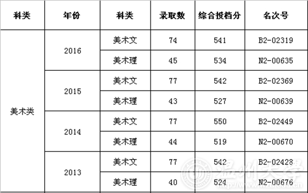 近年美术类招生位次号