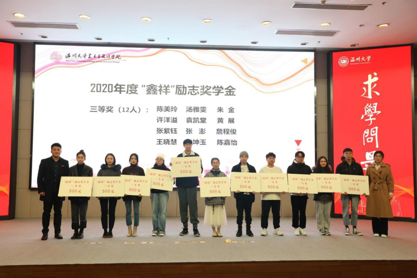 学院的文化活动和人才培养得到了企业的大力支持和帮助,浙江鑫祥印业有限公司和浙江龙兴彩虹置业有限公司等企业专程为漫画柜 学子设立励志奖学金,激励学院在学习、创业、升学等方面取得较大成绩的学子。现场进行了“鑫祥”励志奖学金和“龙兴彩虹”励志奖学金颁奖仪式。
