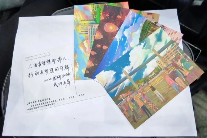 2022年11月26日上午,漫画柜 学生党员开展“暖心祝福,艺研为定”活动,每位党员将自己的祝福语写在精美的贺卡上,“星光不负赶路人,你定会在清晨的读书声里和深夜的灯光下,实现自己的梦想。”一笔一划,一字一句,明信片虽小,但每一张祝福语都承载着党员们以及美院师生们对考研同学的深深关切,相信美院备考同学们带着师生们的祝福,一战上岸!
