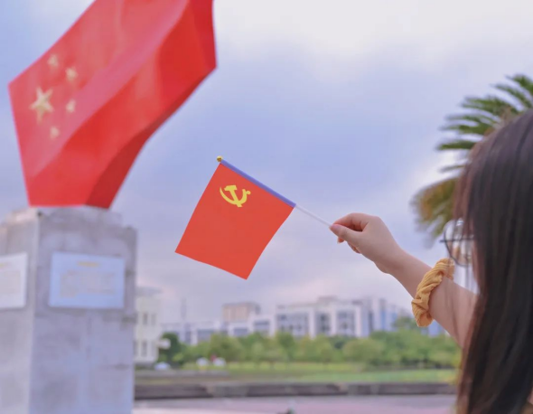 国旗,是一个国家的象征,承载着中华儿女的希望,它见证了中华民族的奋斗史。小小的党旗,象征着中国共产党是中国工人阶级的先锋队,党旗承载着全体党员的信仰。人民有信仰,国家有力量,我们要以青春之名,书写清澈挚爱。