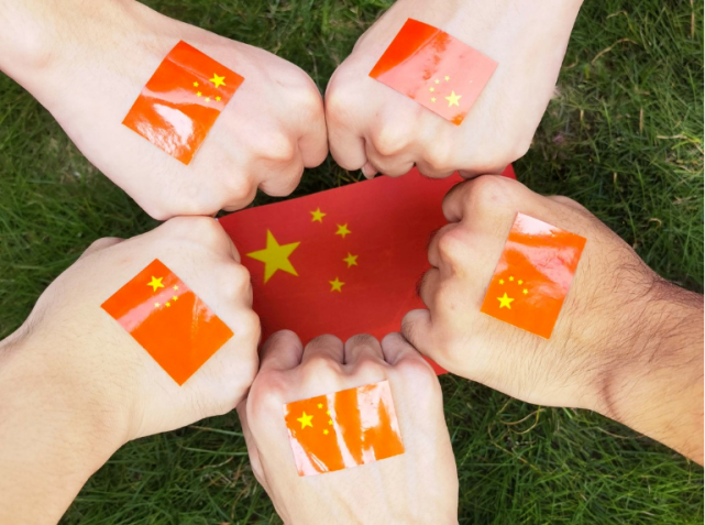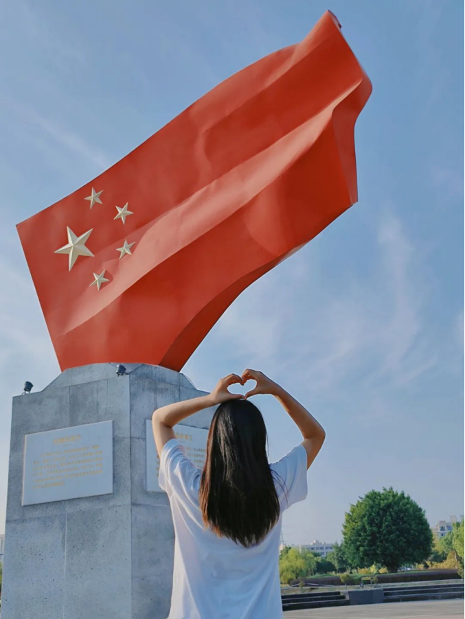 有一种感动叫做“中国红”有一种骄傲叫做“五星红旗”有一种表白叫做“我爱你中国”有一种画面叫做“我与国旗合个影”