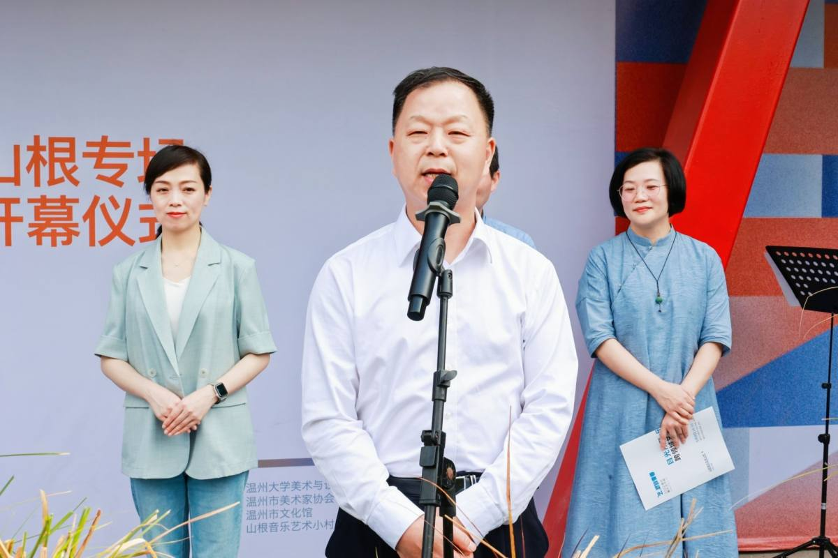 首先,市委宣传部副部长曾伟为本次活动致辞。他向本届毕业作品展的隆重举行表示祝贺,充分肯定了温大美院在专业建设、人才培养、艺术创作和文化繁荣方面取得的成绩,并对毕业生继续弘扬工匠精神、创造时尚之美、呈现文化之美、赞颂生活之美寄予厚望。他指出,温大美院本届毕业生作品展作为2022温州青年艺术周的首场活动,不仅丰富了市民的文化生活,也让青年学生作品得到更多关注,为城市营造了浓厚的艺术氛围。