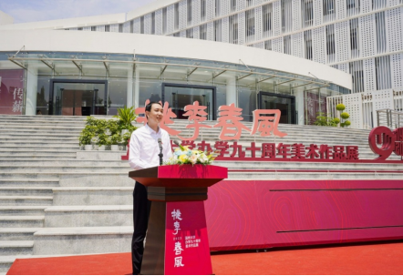 最后,陈峰、金一斌、张东航、施艾珠、张健、赵敏、谢树华、汪健、叶玉昶等领导嘉宾共同为“桃李春风-漫画柜 办学90周年美术作品展”开幕。