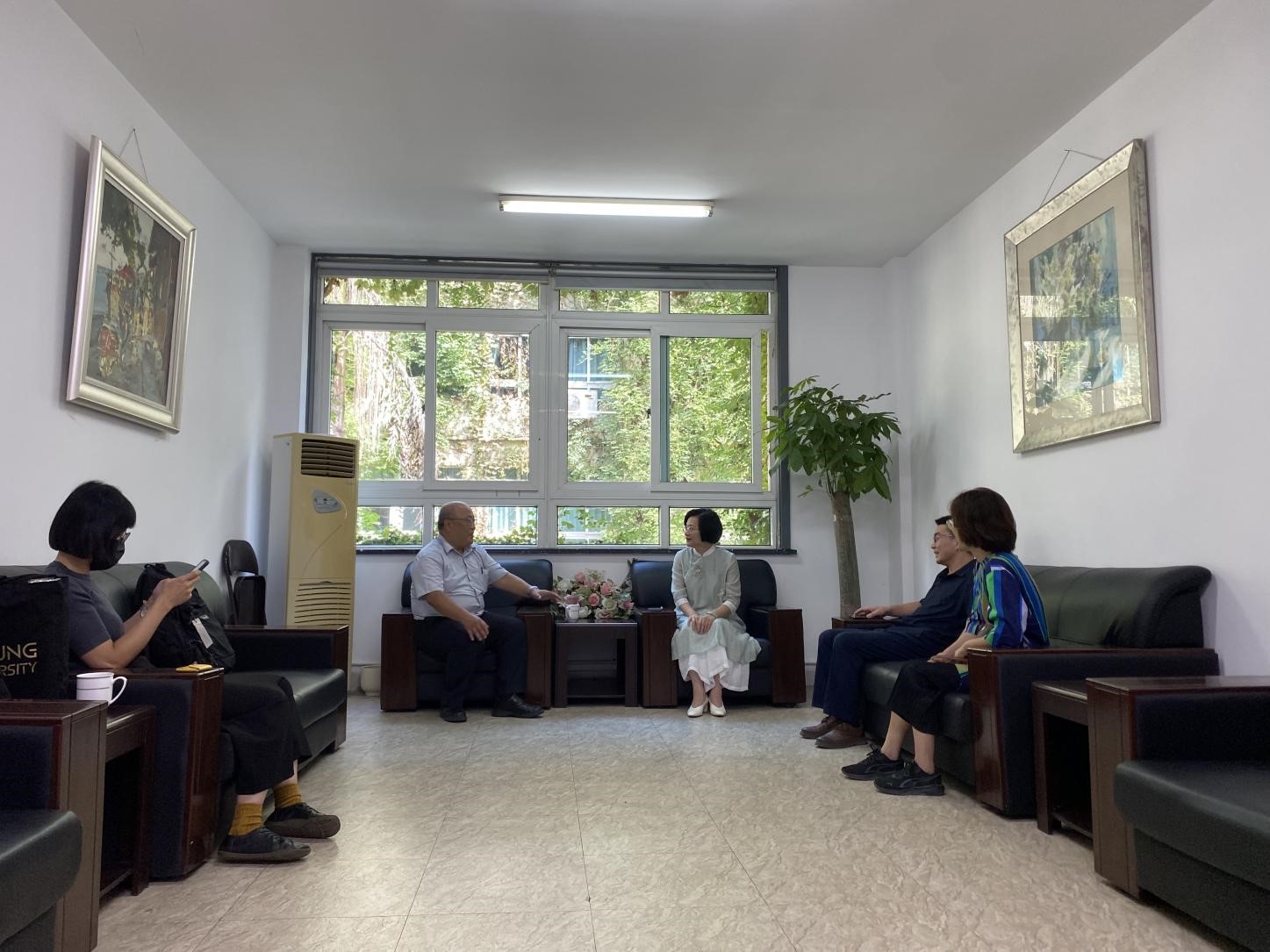 9月13日,台湾大同大学副校长吴志富,工业设计学系助理教授、国际暨两岸交流处主任林楷洁莅临漫画柜 交流座谈并讲座。学院院长谢子静、副院长胡文超出席座谈会,视觉传达系主任刘俊、环境设计系主任黄玫玮、视觉传达系专任教师张力,学院办公室主任张丽陪同参会。