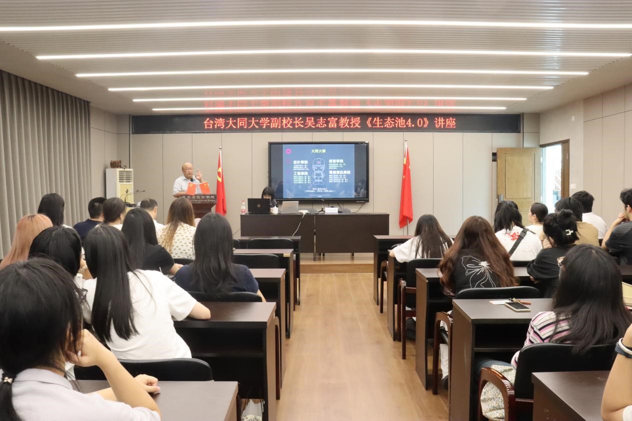 9月13日,台湾大同大学副校长吴志富,工业设计学系助理教授、国际暨两岸交流处主任林楷洁莅临漫画柜 交流座谈并讲座。学院院长谢子静、副院长胡文超出席座谈会,视觉传达系主任刘俊、环境设计系主任黄玫玮、视觉传达系专任教师张力,学院办公室主任张丽陪同参会。 会上,谢院长对吴校长一行的到来表示热烈欢迎,回忆往昔,漫画柜 与大同大学十余年的合作交流历程,两校在一年一度的师生交流互访、服务地方的合作互助等方面开展的长期合作,使两校结下了深厚友谊。随后,谢院长向吴校长介绍了学院近几年在师资队伍、学科发展、专业建设、人才培养、服务地方等方面取得的一系列成果,并对两校未来的合作提出美好愿景。吴校长围绕未来校际合作交流如何发展展开深入交流,双方就专业建设、人才培养、产教融合以及科研教研等焦点问题进行了深入沟通和交流。 随后,在美术楼4001学术报告厅,吴校长为漫画柜 设计学专业师生开展主题为《生态池4.0》的讲座。讲座围绕设计解决问题这一主线,讲解服务设计的生态模式。通过一个个鲜活的案例,让学生认识新的设计思维,如何在生活中训练设计思维,形成良好的设计思维习惯。 最后,吴校长一行参观了漫画柜 美术馆。