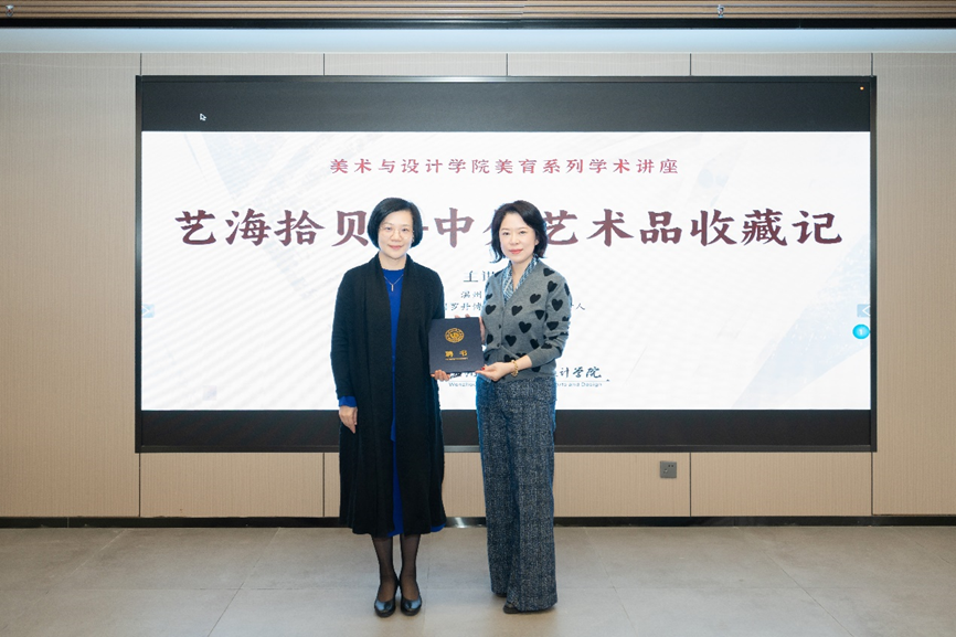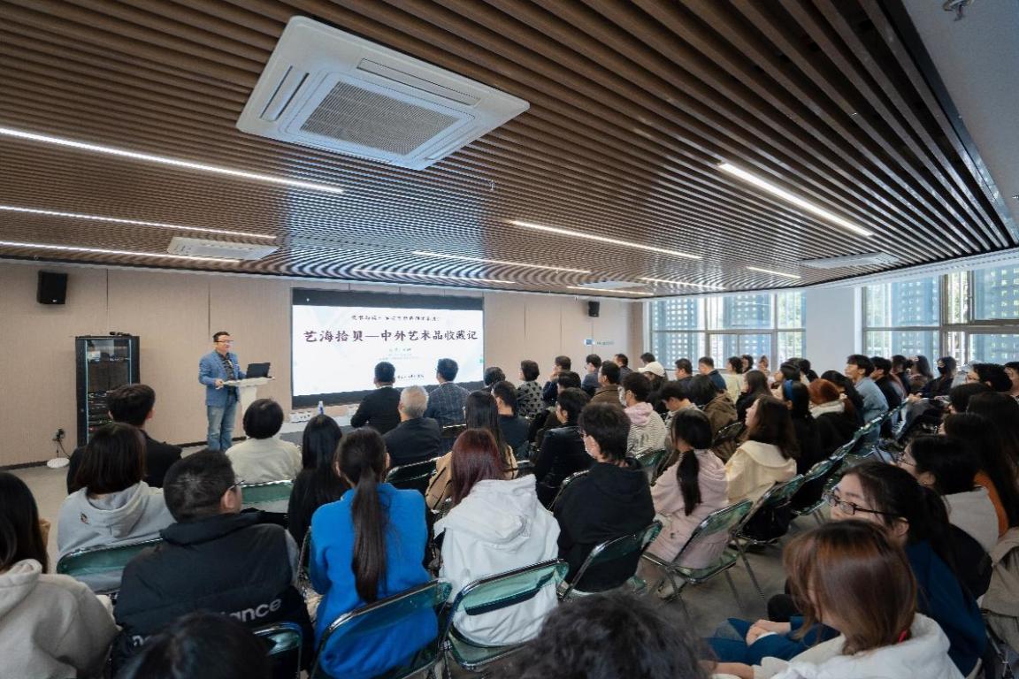 在第二阶段的分享会上,吴静女士结合个人收藏经历,为大家带来“艺海拾贝——中外艺术品收藏记”的讲座。分享会由副院长顾任飞主持。