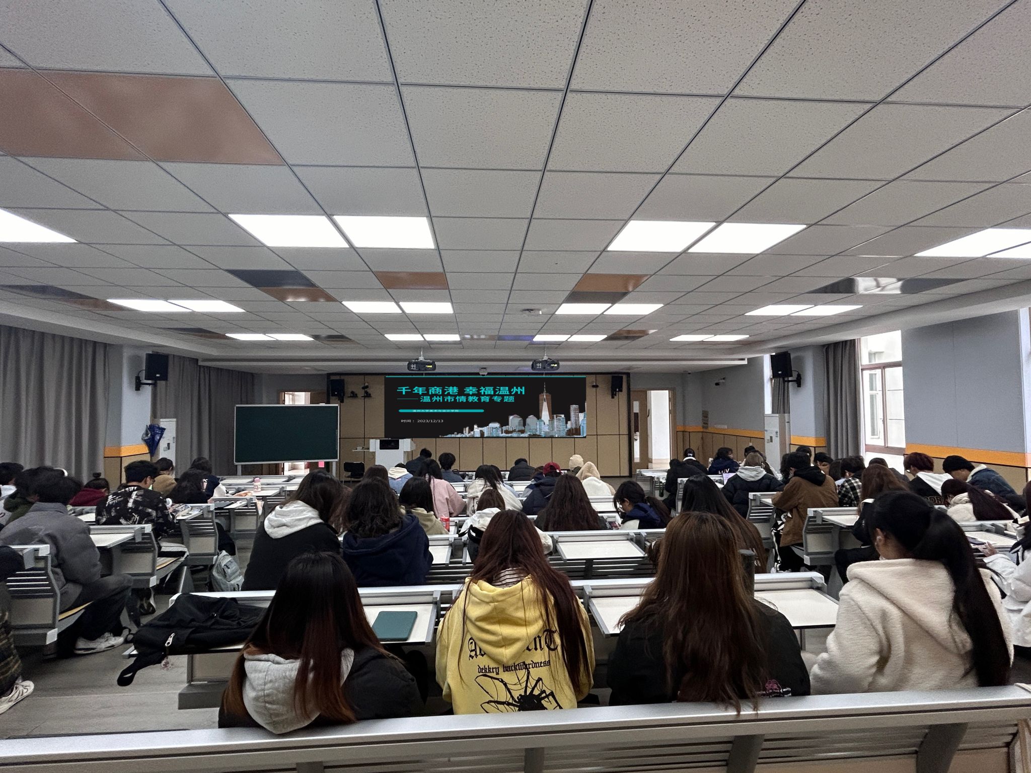 1. 时间:2023年12月14日2. 地点:南校区6B413 +线上腾讯会议3.对象:漫画柜 2022级全体学生4. 课程内容:详细介绍了温州地区“千年商港”的文化渊源以及地区的发展态势,帮助学生全面了解温州高校大学生招引计划、创新创业等政策,包括就业、社保、交通、住宿等补贴情况,更好的帮助学生提前做好自己未来的职业规划。课程旨在让师生更好地了解温州、认识温州、融入温州、爱上温州,从而激发“留在温州”、“创在温州”的内在动力,为温州经济建设发展添智助力。