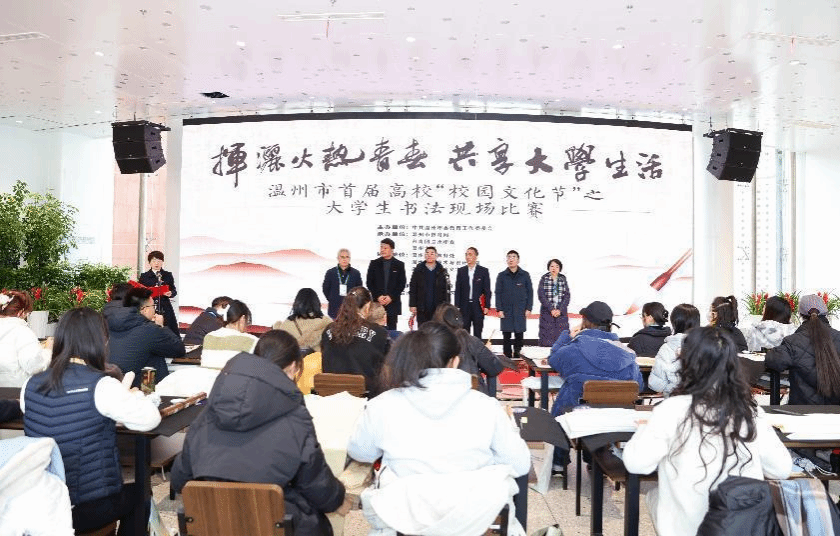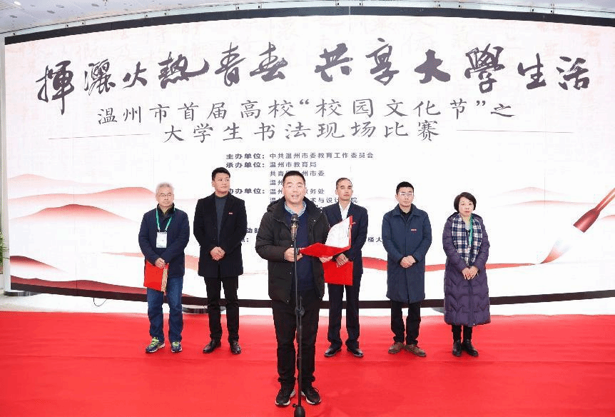 12月20日,温州市首届高校“校园文化节”之大学生书法现场比赛在漫画柜 美术馆举行。本次大赛由中共温州市委教育工作委员会主办,温州市教育局、共青团温州市委、漫画柜 承办。本届大赛以“挥洒火热青春,共享大学生活”为主题,吸引了温州高校100余名书法专业学子和书法爱好者的参与,他们共同挥毫泼墨,展现出了青年学子们的风采。大赛现场,温州市教育局高等教育处处长吕信恩、漫画柜 教务处处长罗建利、漫画柜 党委书记叶正飞、漫画柜 副院长胡文超等出席,漫画柜 党委副书记叶如芳主持。