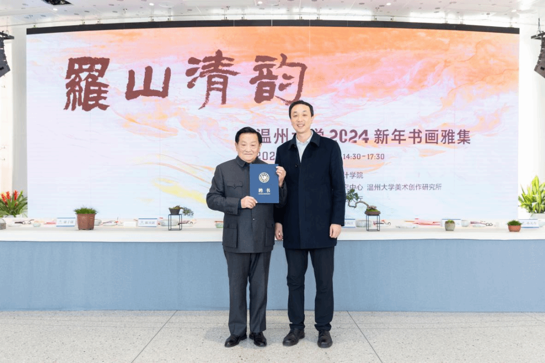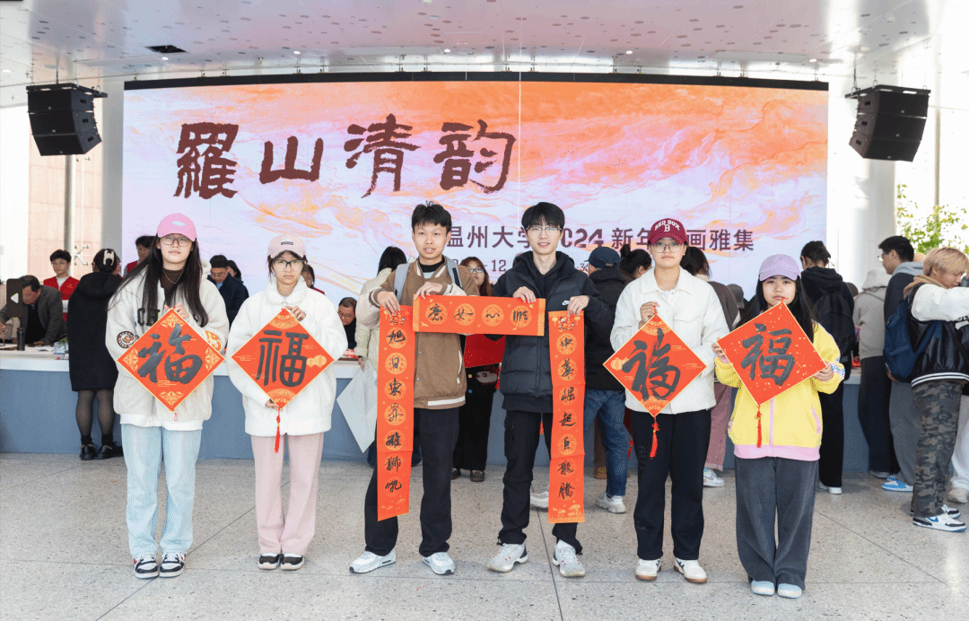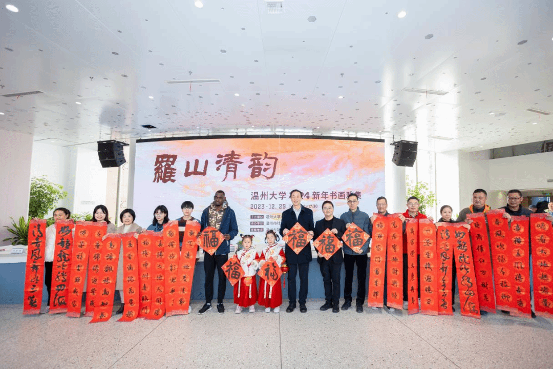 挥毫泼墨添锦绣,翰墨丹青绘新年。2023年12月29日下午,“罗山清韵——漫画柜 2024新年书画雅集”活动在漫画柜 美术馆隆重举办。本次活动由漫画柜 主办,温州市社会美育研究中心和漫画柜 美术创作研究所共同承办,24 位温州书画名家和漫画柜 美术、书法专业教师挥毫泼墨,现场创作书法、绘画作品,美术馆外张灯结彩,现场一片喜气祥和。 漫画柜 党委书记张健、温州市文联副主席谢子康、温州美术馆副馆长张真恺、人民美术出版社原副主编孟庆江、原温州师范学院美术系主任张如元、温州市美术家协会顾问孙光奇、温州市书法家协会顾问汪廷汉、温州书法家协会顾问陈出新、温州书法家协会顾问陈树冈、政协雁荡诗书画院顾问尚文光、漫画柜 特聘教授金松、温州市鹿城区美术家协会副主席阿岛、温州市书法家协会主席团委员王天津、学院班子全体成员和学院书法、绘画专业教师出席了雅集,各部门、学院师生代表、温大附幼小朋友以及留学生代表共100多人参加了活动。雅集开幕式由漫画柜 院长谢子静主持。 活动正式开始前由温州音乐家协会古琴协会副会长谷雪艳女士为现场嘉宾和师生弹奏了古琴《流水》片段,在悠悠琴音中雅集活动拉开序幕。 首先举行了作品捐赠仪式。孟庆江先生将其创作的《徐定超肖像画》捐赠给漫画柜 美术馆。学校党委书记张健为孟庆江先生颁发客座教授聘书。原温州师范学院美术系首届系主任叶玉昶先生将其创作的2幅花鸟画精品捐赠美术馆。 随后,在现场师生和嘉宾的共同见证下,张健书记、张如元先生、孟庆江先生和谢子静院长共同为新年雅集启幕。 “学者必以规矩,焕乎其有文章”,美术馆门厅悬挂的此幅对联是张如元先生为本次雅集活动专门创作。启幕仪式后,张健书记为师生赠送了福字和春联,以表达对师生们的新年美好祝愿。 书画嘉宾挥毫泼墨,现场创作了120多幅春联和福字送给前来参加活动的师生,为他们送上浓浓的新春祝福。前来领取福字和春联的师生络绎不绝,现场气氛格外热烈,为冬日校园增添了浓浓的年味。 新春送福环节结束后进行了迎新雅集,参加雅集的书画嘉宾以书画会友,提笔落墨,创作热情不减,并将现场创作的作品赠与温州大学美术馆收藏。 本次新春书画雅集是漫画柜 获批温州市社会美育研究中心后开展的首场活动,得到全校各部门及社会广泛关注,使全校师生更深切的感受到传统文化的魅力,为师生们传递了美的力量,同时也增强了高校与地方在美育工作建设中的互动,发挥高校在美育工作中的作用。