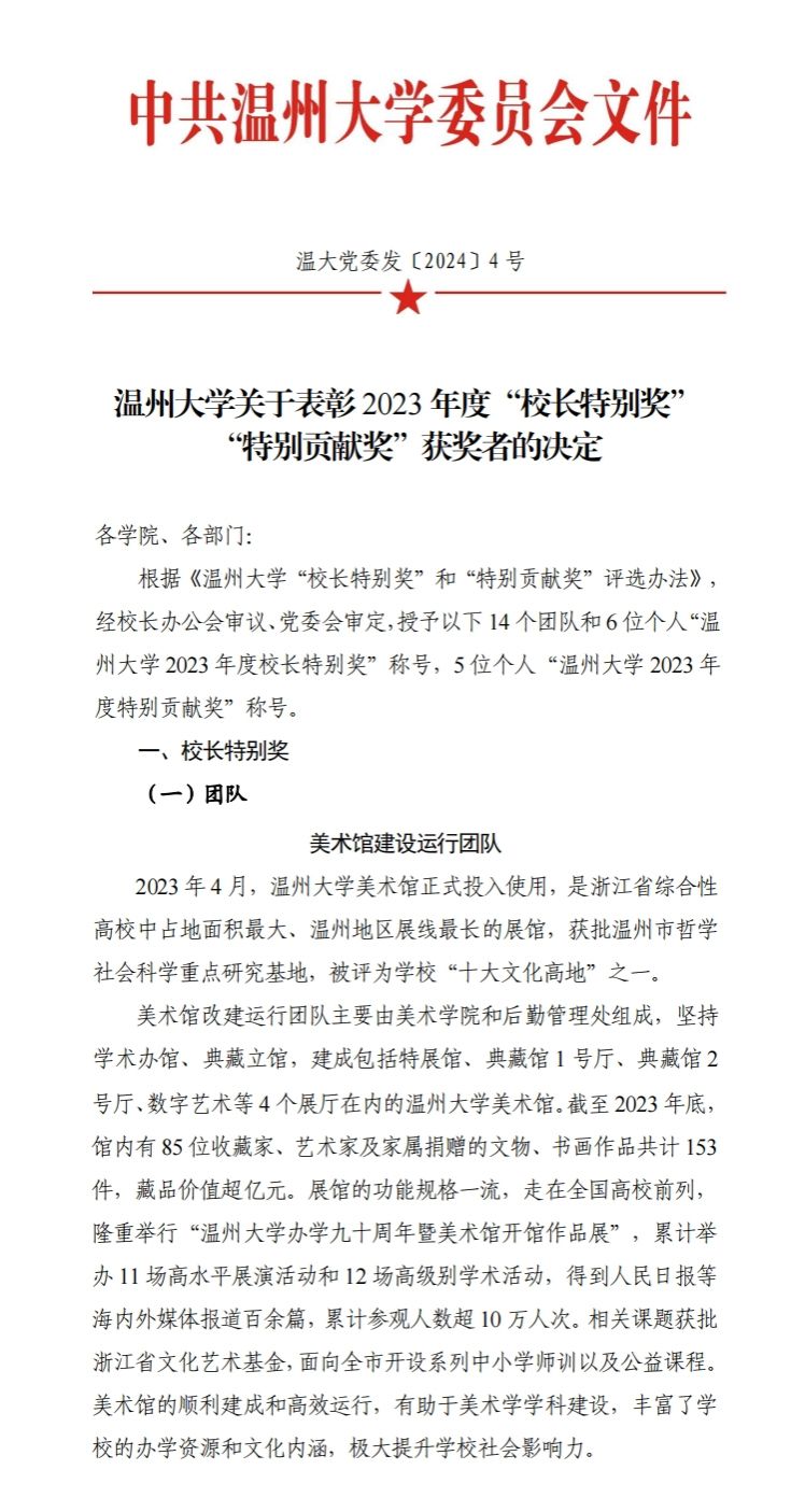喜报:美术馆建设运行团队荣获漫画柜 2023 年度“校长特别奖”