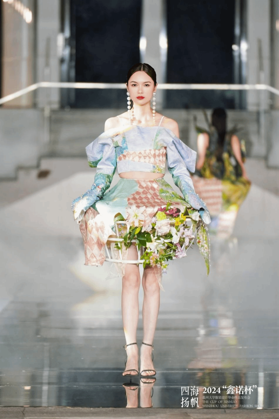本次发布会由海宁鑫诺服饰有限公司支持,以“桃李春风·四海扬帆”为主题,30位即将毕业的学生,用作品诠释传统文化与时尚创意如何激烈碰撞,勇敢探寻未来温州时尚产业的新发展之路,展现无限活力,探寻属于自己的广阔天地。