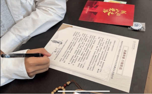 信诺不渝,廉保初心。美术学院还组织全体毕业生党员现场签订了《廉洁从业承诺书》。通过庄重而神圣的仪式,警醒毕业生党员要带头牢记“廉洁从业”理念,弘扬“勤俭促廉”传统、培树“崇廉守洁”之风。“感谢学院的本次廉洁教育活动,我也会努力将所得所思转化为实际行动,自觉增强廉洁意识,增强纪律和法制观念,踏踏实实做好自己的本职工作!”毕业生党员严瑄琦说。
