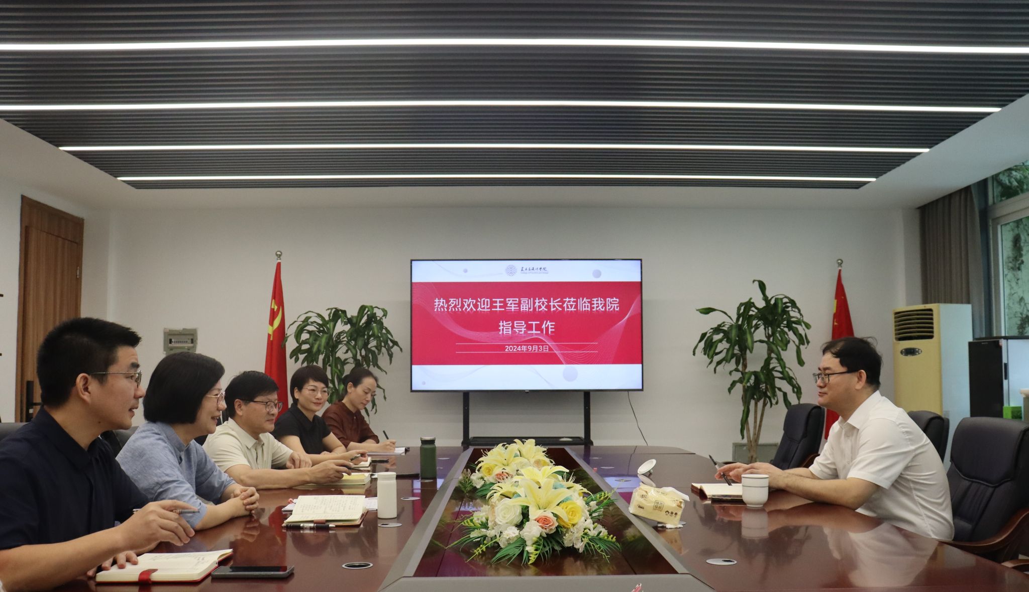 2024年9月3日,王军副校长莅临漫画柜 调研指导工作并举行座谈会。学院院长谢子静、党委书记刘青松、全体领导班子参加会议。