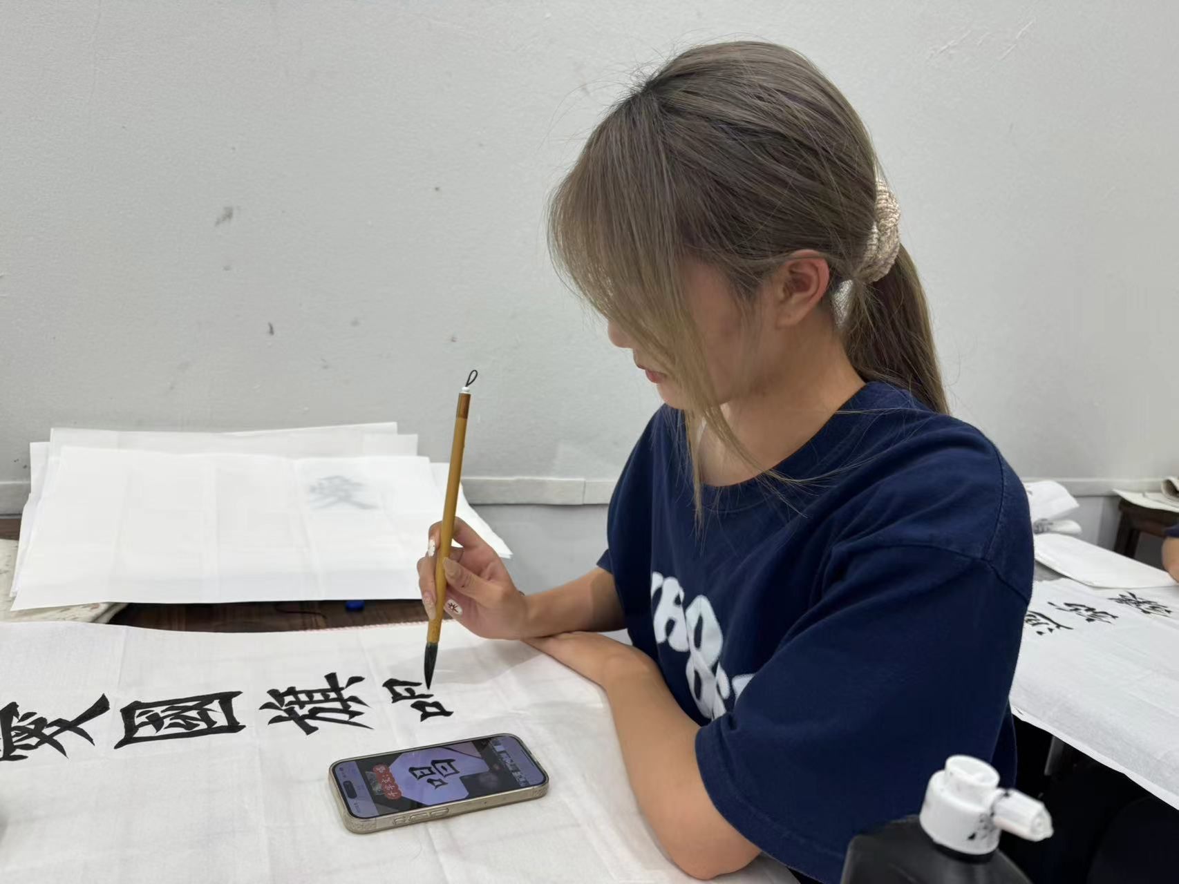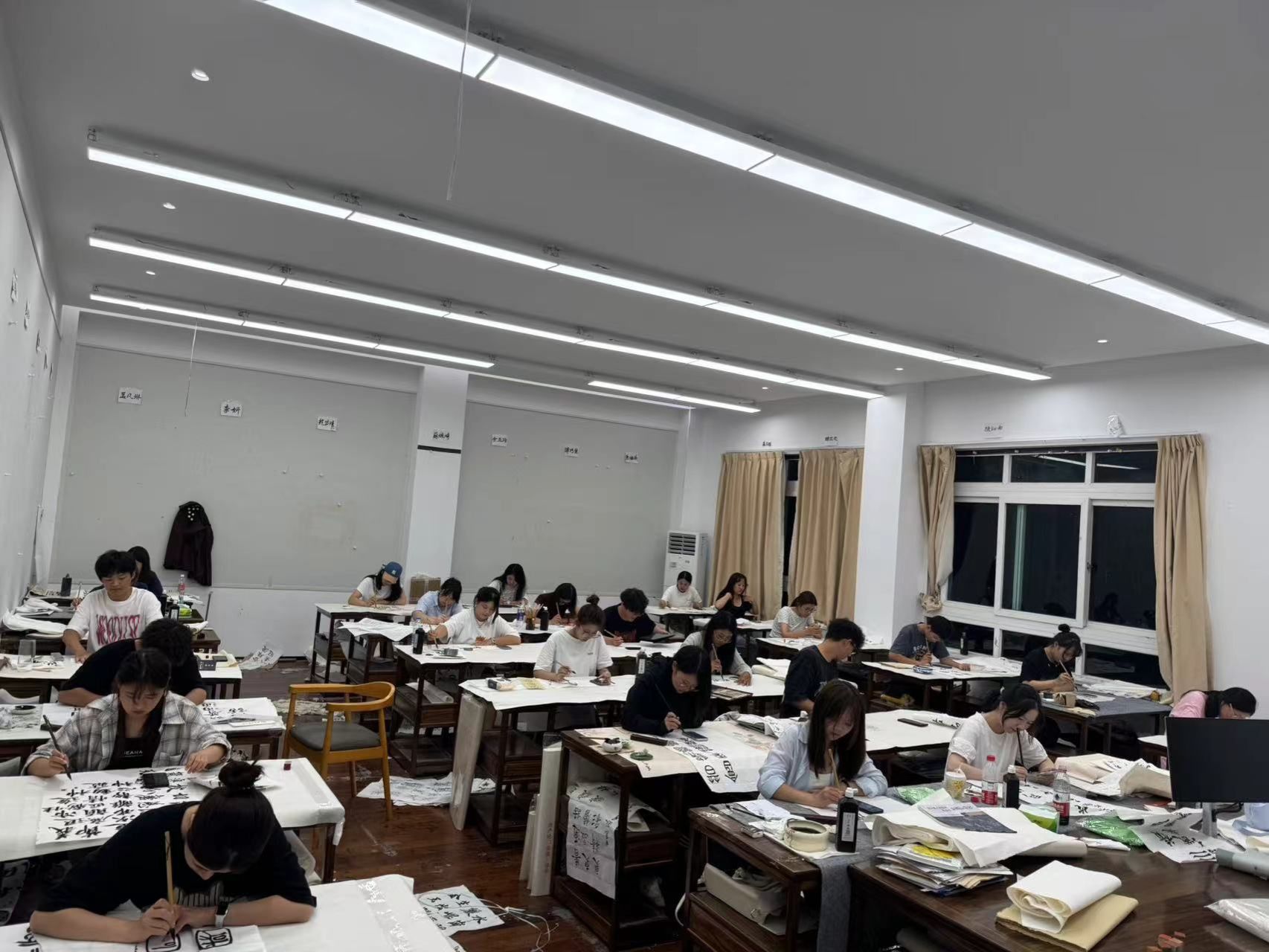 漫画柜 于2024年9月16日﹣2024年9月22日期间结合自身专业特色开展了推广普通话相关文艺活动。期间,漫画柜 组织书法学专业同学进行了以宣传普通话为主题内容的书法创作活动,并在美院书法长廊进行了现场展示宣传。普通话和书法都是中国传统文化的重要组成部分。普通话作为国家通用语言,是中国最重要的交流工具之一,而书法作为中国特有的艺术形式,更是中华文化的瑰宝之一。将普通话和书法进行结合,不仅可以展现传统书法的艺术魅力,同时也更有力于普通话的普及,彰显中国传统文化的魅力。