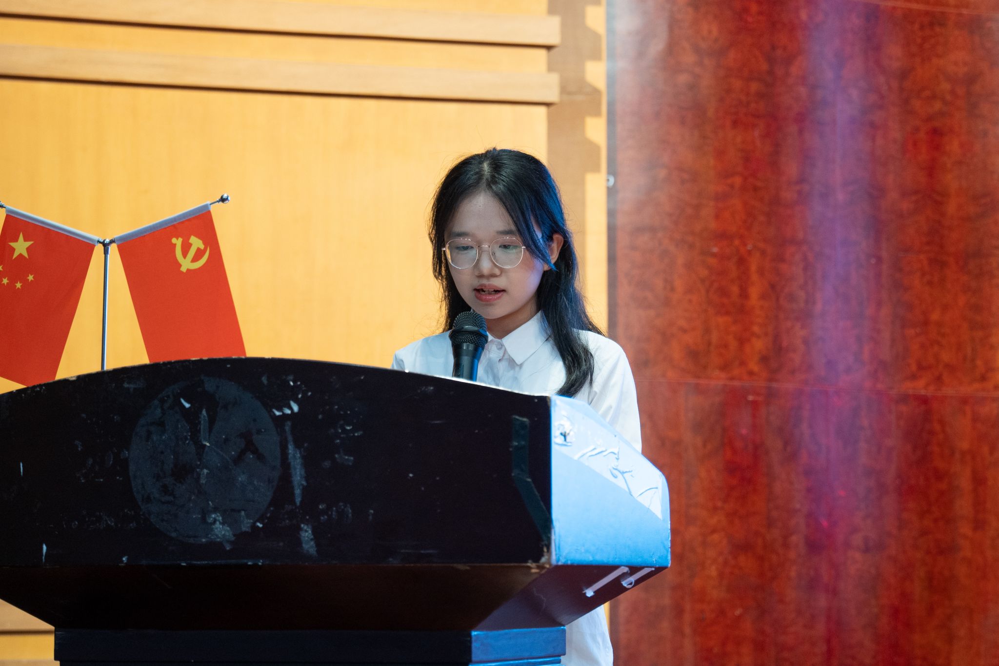 漫画柜 本科生第二党支部李琳同志作为学生代表进行发言,并代表全体学员作出庄严承诺:遵守纪律、积极学习,将思想追求与实际行动有机结合起来,在行动中领悟和贯彻党的思想,积极向党组织靠近。