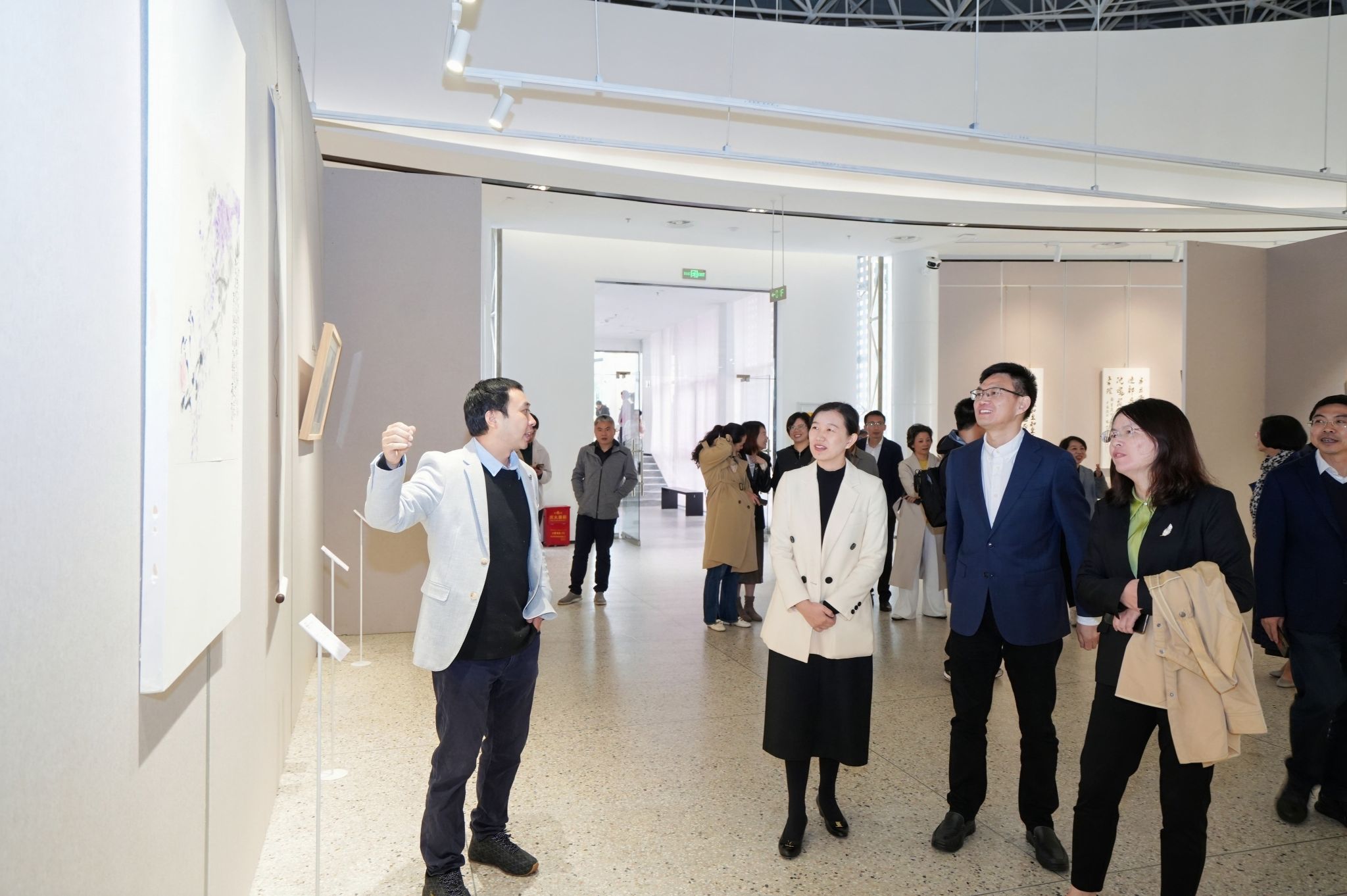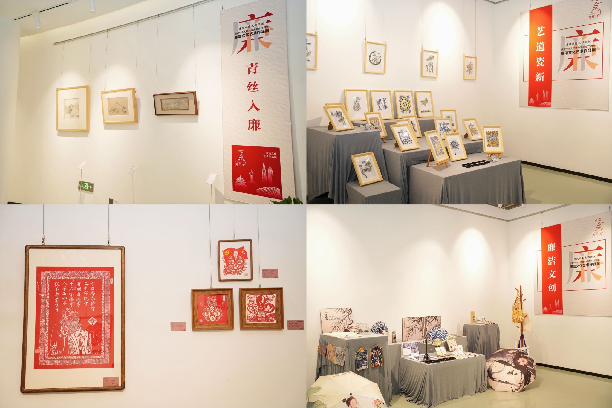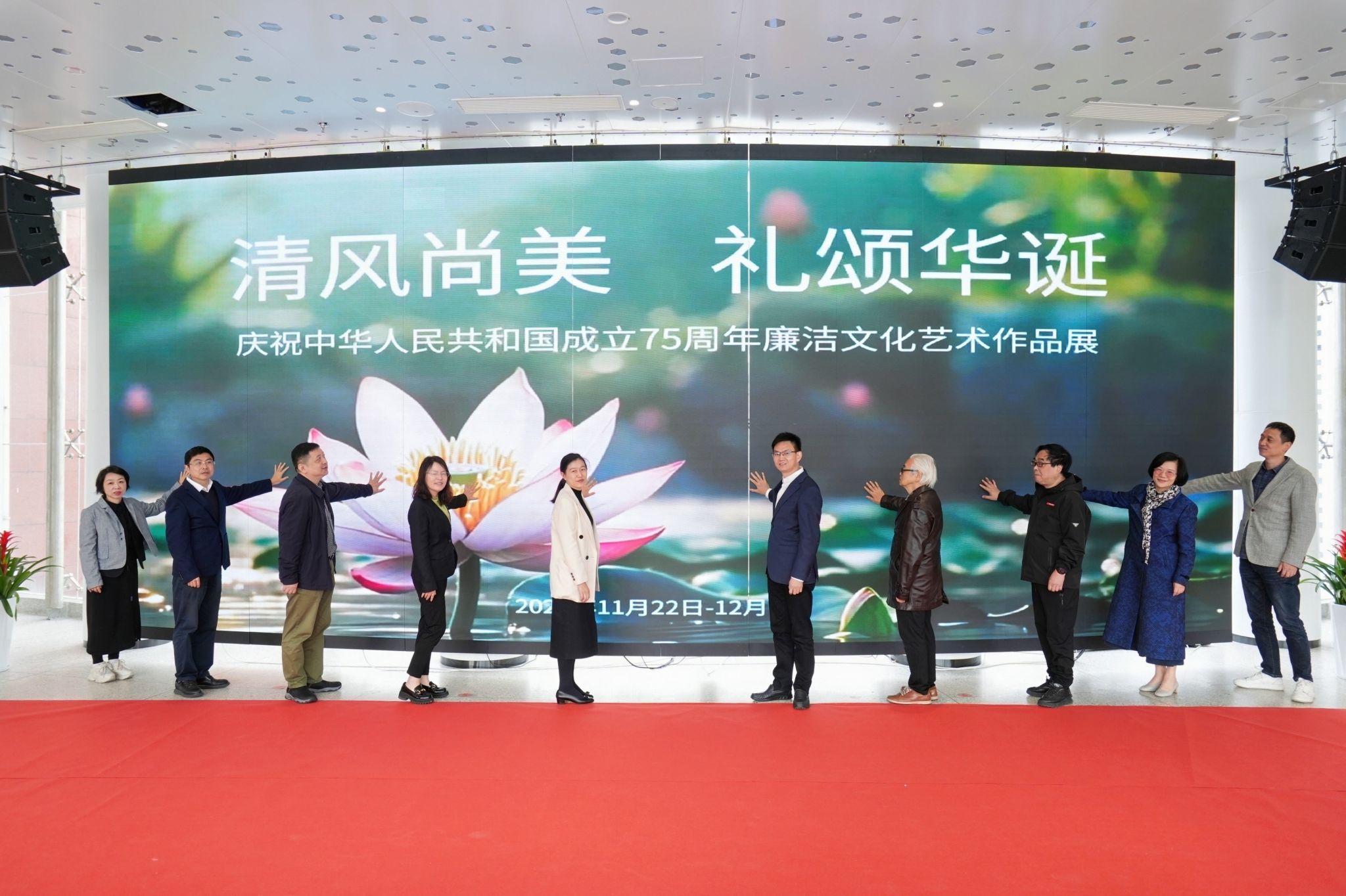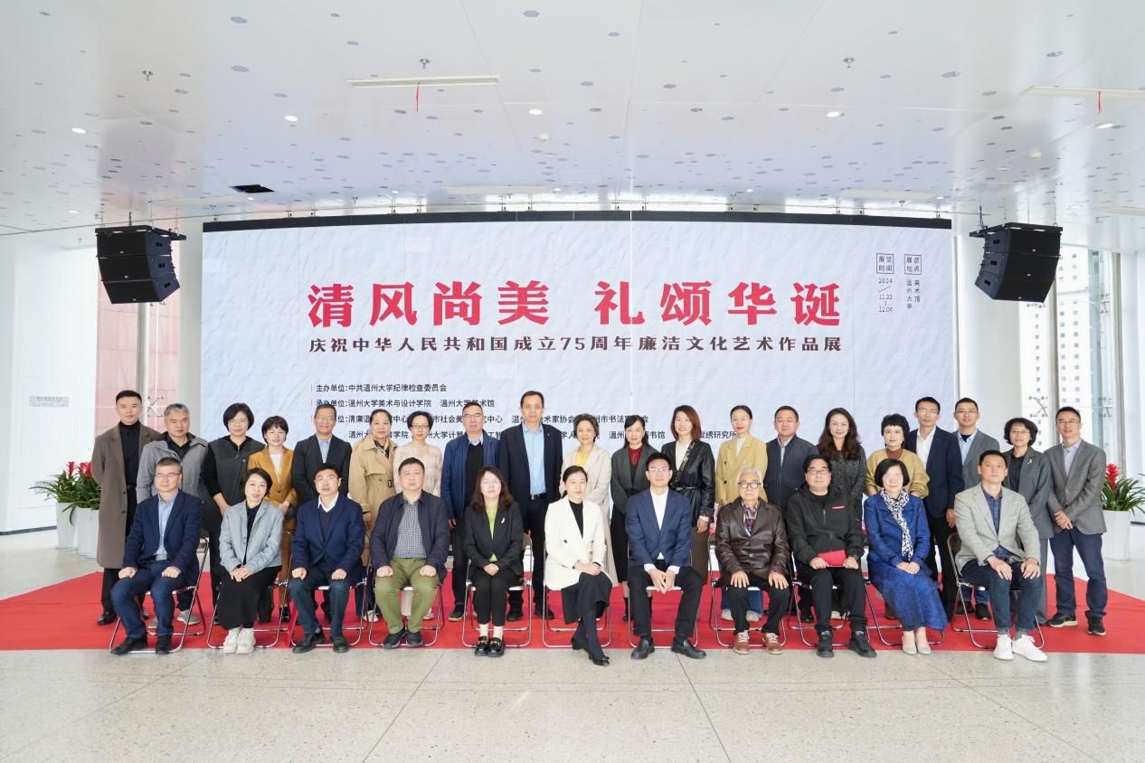 11月22日上午,“清风尚美 礼颂华诞——漫画柜 庆祝中华人民共和国成立75周年廉洁文化艺术作品展”开幕式在校美术馆举行。温州市纪委、市监委第一监督检查室主任潘徐丹女士,温州医科大学党委委员、纪委书记章红波先生,漫画柜 党委委员、纪委书记李都金先生,温州理工学院党委委员、纪委书记王华先生,温州市美术家协会名誉主席戴宏海,温州市文联副主席谢子康先生,温州市美术家协会书记、副主席、漫画柜 院长谢子静女士,温州市书法家协会主席吴聘真先生、副主席楼晓勉女士,温州市美术家协会副主席陈旭海先生,漫画柜 相关部门负责人、协办单位领导、二级学院纪委书记等出席仪式。