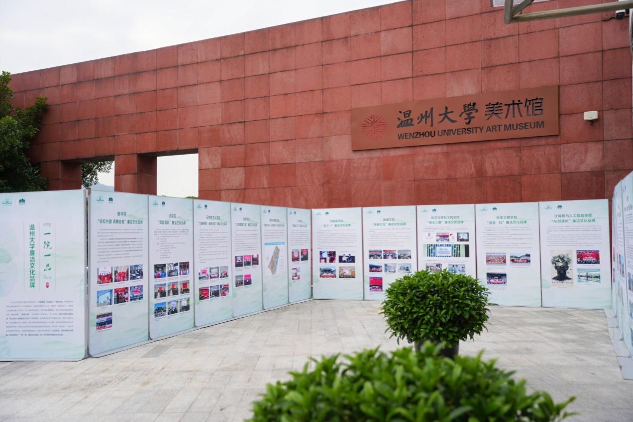 美术馆门口同步展出的,还有各个学院具有专业特色的、师生广泛参与的“一院一品”廉洁文化互动矩阵,鼓励各部门加强协作,强化“清廉建设”责任共同体意识,共同构建廉洁文化教育的长效机制,形成全员参与、全程覆盖、全方位渗透的廉洁文化教育体系,把校园建设成立德树人的绿水青山。