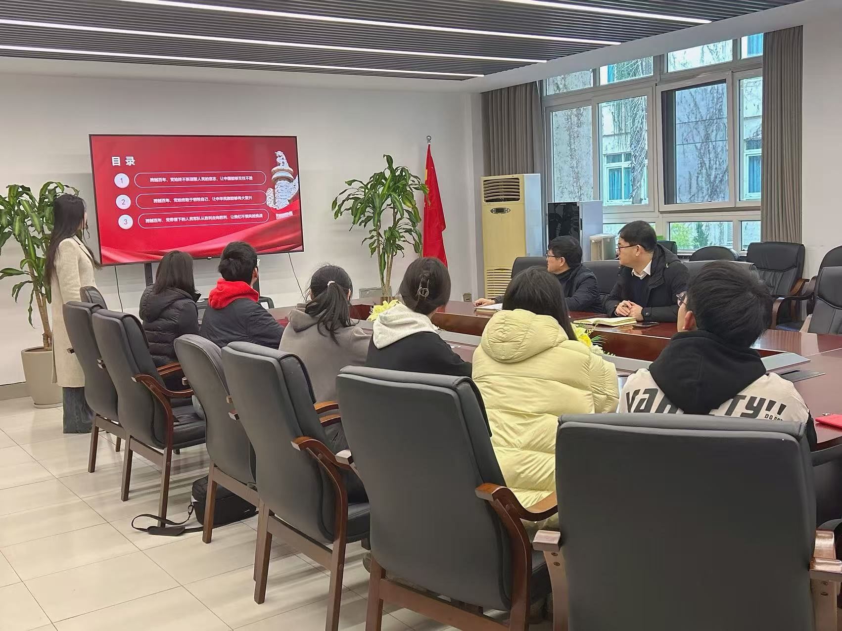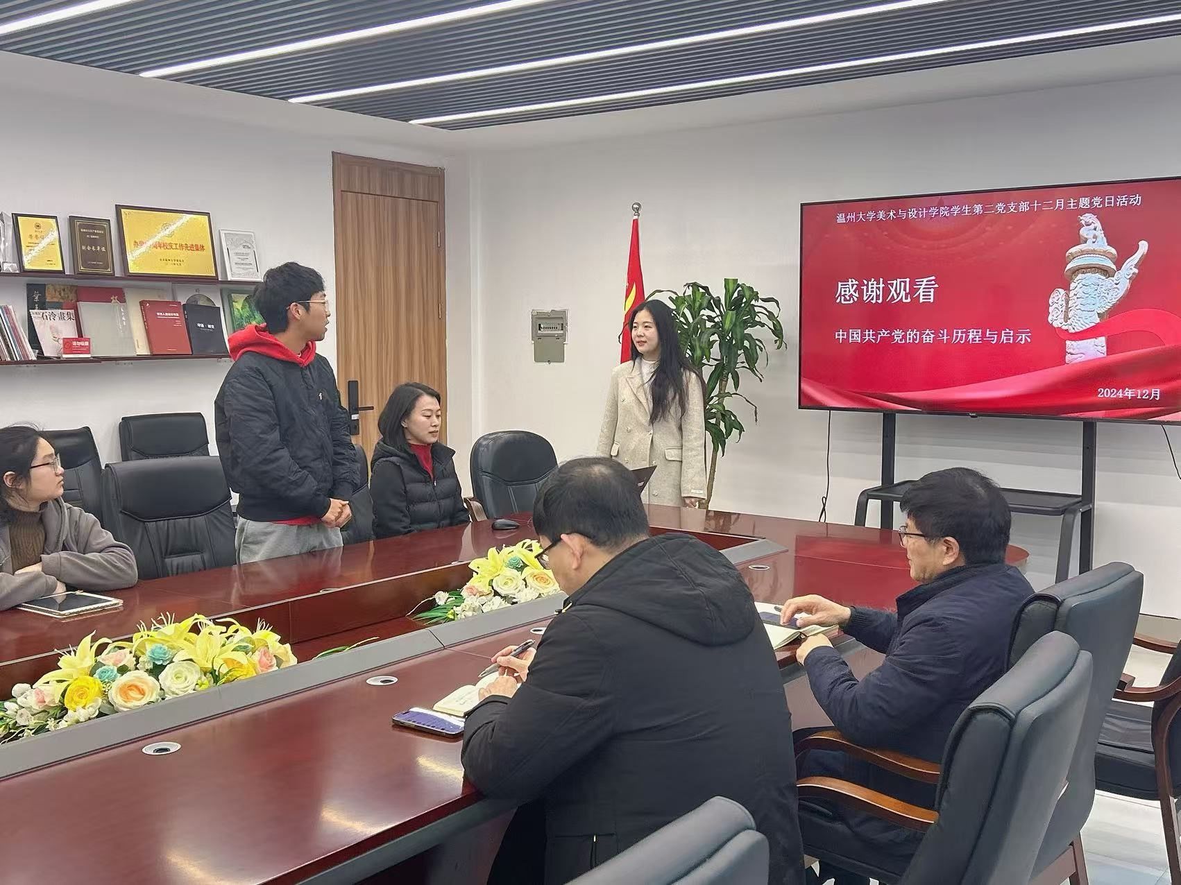 2024年12月31日上午,漫画柜 学生第二党支部在美术楼2B216会议室开展以“跨越百年,党心永恒”为主题的专题学习会,校党委委员王军作为联系该支部的校领导全程参与指导活动。学院党委书记刘青松、学生第二党支部党员全体参加。活动由支部书记陈嘉怡主持。