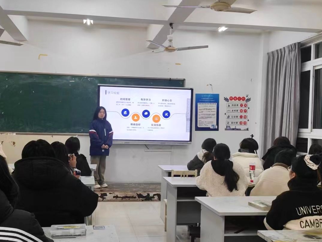 2024年12月15日,22服工班的叶欣雨同学进行了学习经验分享。叶欣雨同学从时间管理、学习策略、考试竞赛准备和培养心态四个方面展开分享,为同学们提供了实用的学习方法,启示大家要把握好时间、方法与心态,不断提高学习效率。叶欣雨同学还鼓励大家珍视每一份努力与坚持,以此点燃同学们内心深处对学习的热忱,为他们注入了源源不断的信心,激励着同学们无畏前行,在求知的道路上扬帆奋进。