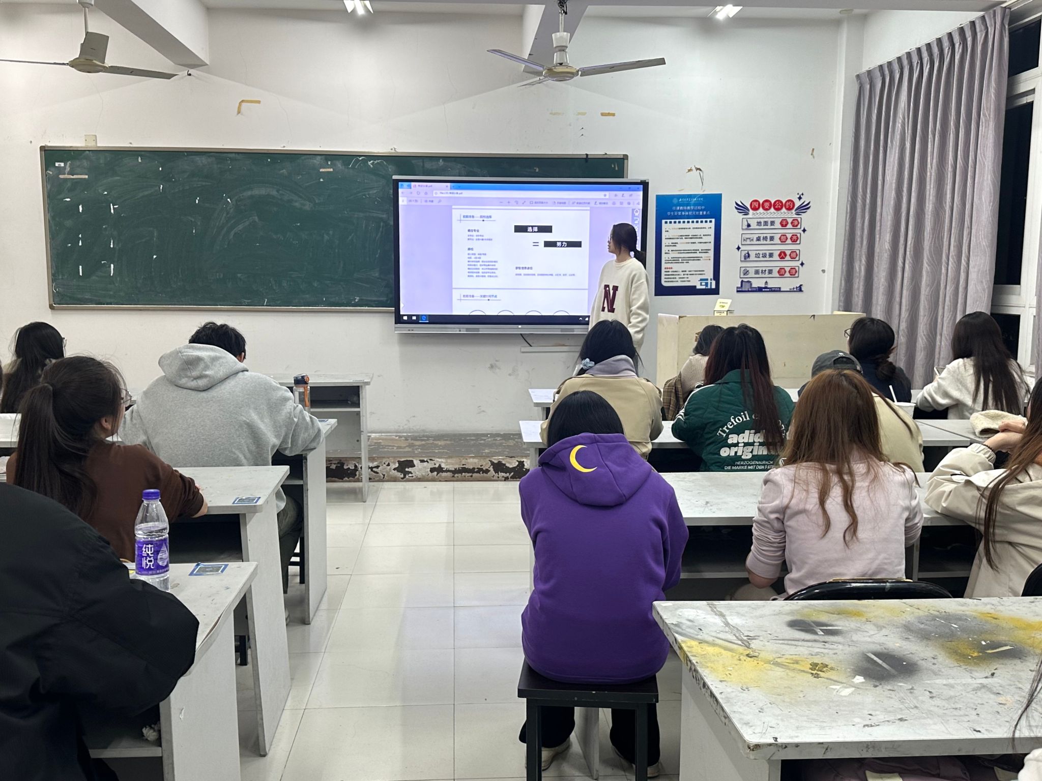 2024年10月20日,21美师3班的张青青同学进行了转专业经验分享。张青青同学以个人经历为引,详述转专业准备要点,精准解读相关政策,深入阐释了对转专业的认知与见解,并着重指出心理建设与实际行动在这一过程中的关键作用。对有转专业意向的同学来说,本次分享无疑提供了宝贵的参考和启示。张青青同学对自身理想的重视和追求也激励着在场的每位同学,探索属于自己的学术新领域,书写青春奋斗的新篇章。