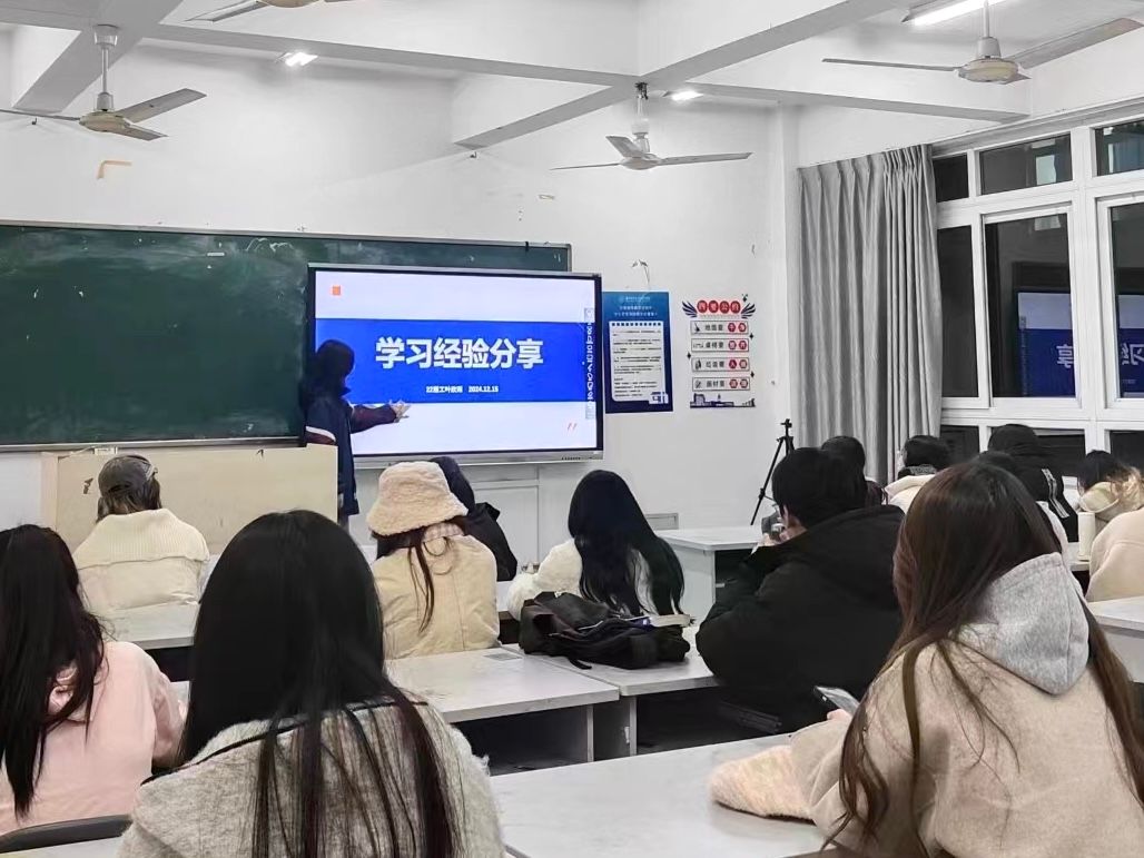2024年11月24日,24研究生2班的杨晓凤同学进行了考研经验分享。杨晓凤同学提醒大家要综合考虑报考院校的层次和报录比,全面评估自身的学术基础、职业规划和兴趣,确保所选院校和专业既符合个人长远发展目标,又能提供适宜的成长环境。这也使同学们充分认识到考研不仅是一次知识的试炼,更是自我的探索与成长,唯有精准规划、稳扎稳打,方能在考研之路上行稳致远,达到理想目标。