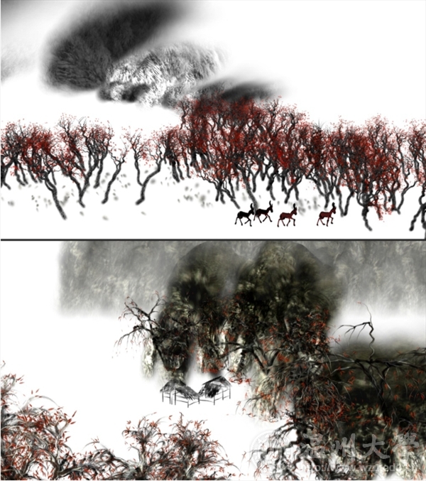 数字动态三维写意水墨山水画