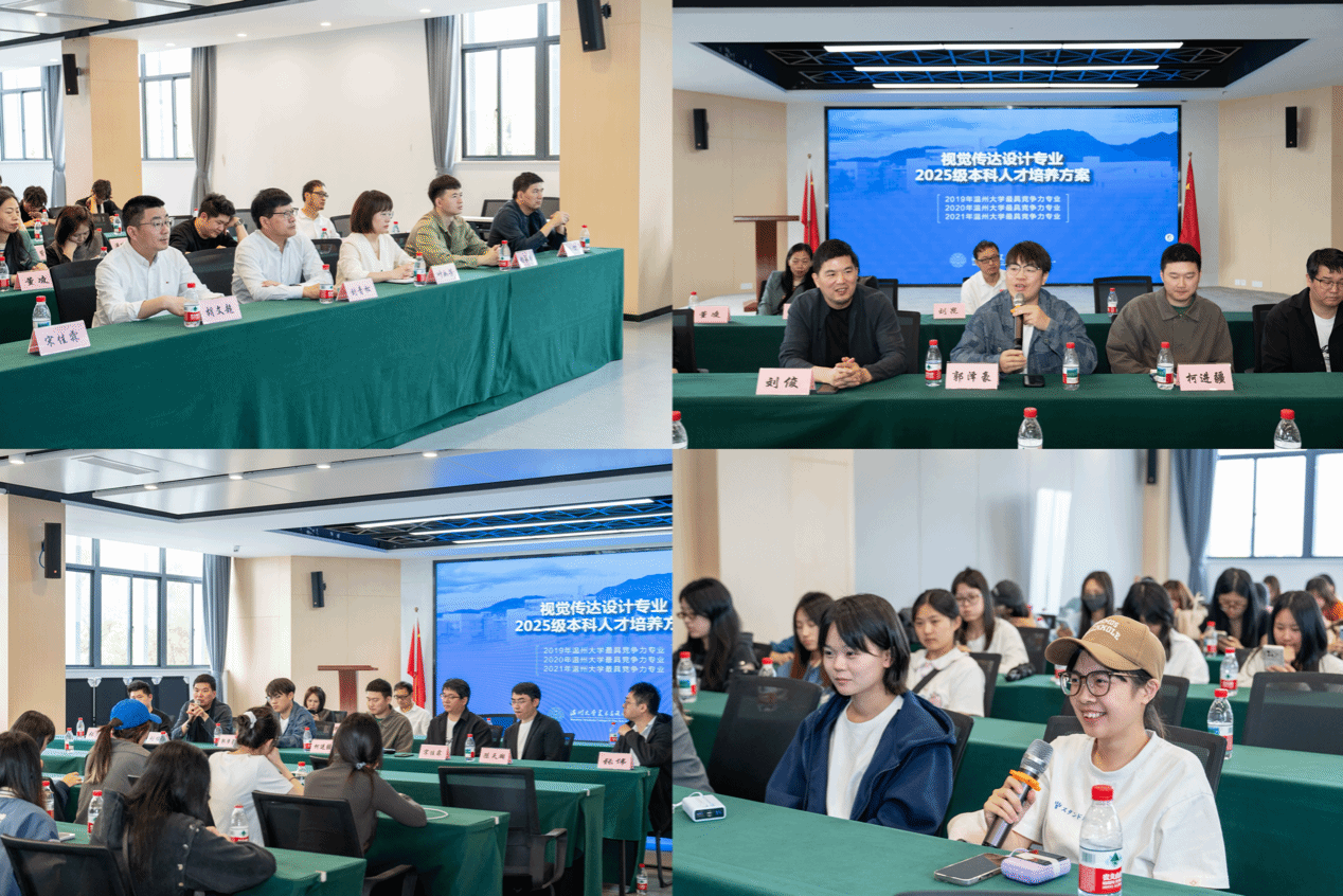 校企双方围绕人才培养和专业建设展开深度交流。企业方结合实际案例,分享行业对设计人才的核心需求,强调创新思维、技术应用与跨领域协作能力的重要性。院方则从课程设置、实践教学、学科竞赛等方面介绍学院育人特色,并提出以项目制教学推动校企联合课题开发的合作构想。学生代表也积极参与互动,就职业规划、行业趋势等问题向企业专家提问,现场氛围热烈。