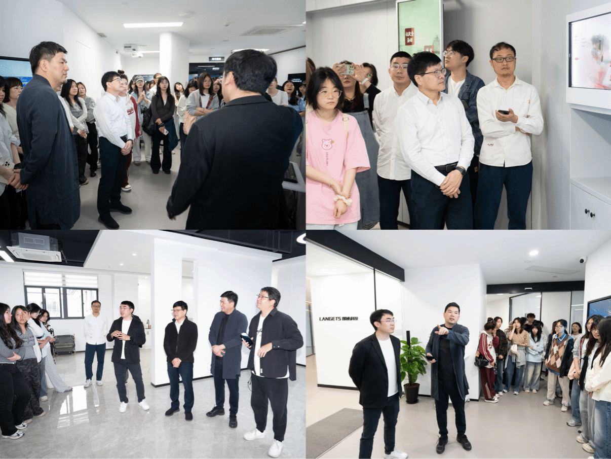 走访伊始,师生一行参观了朗迹科技与新邑互动企业展厅及办公环境。作为两家入驻中国(温州)智能谷的优质企业,朗迹科技专注于数字创意与品牌设计服务,在文化IP开发、品牌视觉系统构建等领域成果显著;新邑互动则以互动科技为核心,在文旅数字化、沉浸式体验设计等领域积累丰富的行业案例。