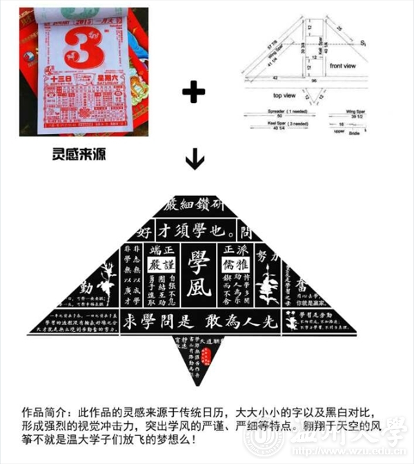 4月4日,漫画柜 “忙趁学风绘纸鸢”风筝设计制作DIY大赛落下帷幕。作为清明节的重要习俗,放风筝象征着除病消灾,给自己带来好运。此次大赛旨在通过我国传统文化的结晶——“风筝”,加强大学生对传统节日与文化艺术的了解和传承。 本次大赛自4月20日开始收集作品,得到了许多同学的热烈反馈,期间收到了许多优秀的参赛作品,最终评选出前三名优胜奖和三名优秀奖,现公布如下:第一名:14环艺 赵胜益第二名:15视传 黄圣权第三名:15视传 张家奕优秀奖:15服设四班 黄后壮 15视觉传达 许金智 16服设四班 郭梦涵 图:金 洁文:唐宁湘