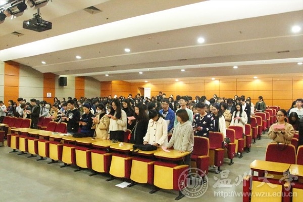 全体参会同学在学生代表的引领下宣誓,承诺端正考试态度认真复习积极备考。最后由学生处吕乐老师进行大学生文明修身考风考纪专题讲座。吕乐老师通过精彩的演讲和亲切的互动,加深了同学们对考试作弊的危害的理解,相信同学们也一定会用真实的成绩证明自己的实力,成为一名诚实守信的大学生。