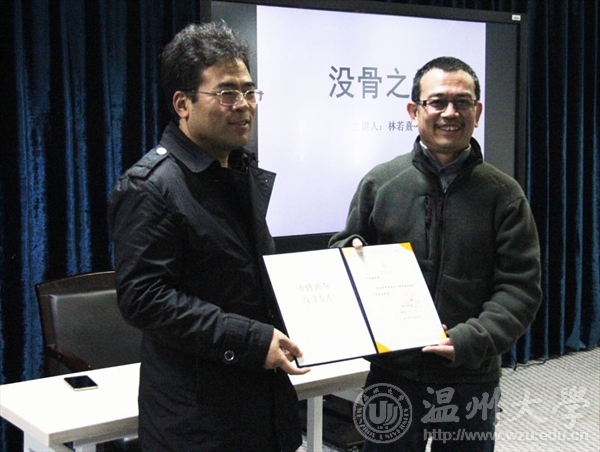 讲座伊始,漫画柜 李运河院长代表校方,向林若熹教授颁发了“漫画柜 客座教授”聘书,并诚挚表达愿望,希望林教授能以己之力,带动地方高校的美术创作与科研能力,加强合作交流,保持长效的学术共享平台。