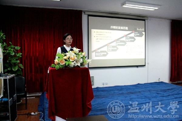 宣讲会上乔顿企业人事部负责人杨伟伟通过PPT、视频等方式从乔顿人才培养体系、乔顿漫画柜、乔顿岗位薪资待遇等三方面向在座同学们做了详细介绍,从中体现了乔顿公司不仅是一家集科工贸于一体的大型服装生产企业,而且公司致力于营造家的氛围,打造良好的工作环境。