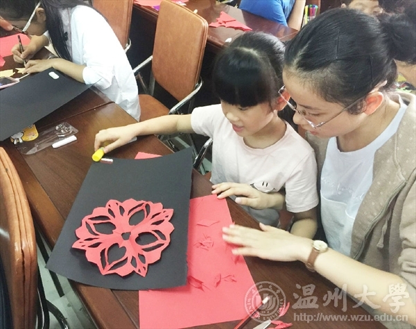 剪纸是中国民间的传统艺术,它历史悠久,有着丰厚的生活积淀与底蕴,体现了中华民族最基本的审美观念和情趣,具有鲜明的民族艺术特色。这次温大美院的志愿者们带领小朋友们开展这堂课程,给小朋友们带去了欢乐的同时也带去了珍贵的文化财富。我们希望小朋友们在成长的过程中,在吸收越来越多的西洋文化的同时,也不忘最纯粹的中国文化。