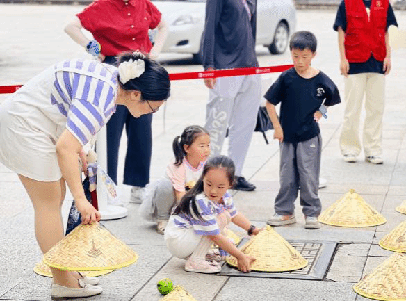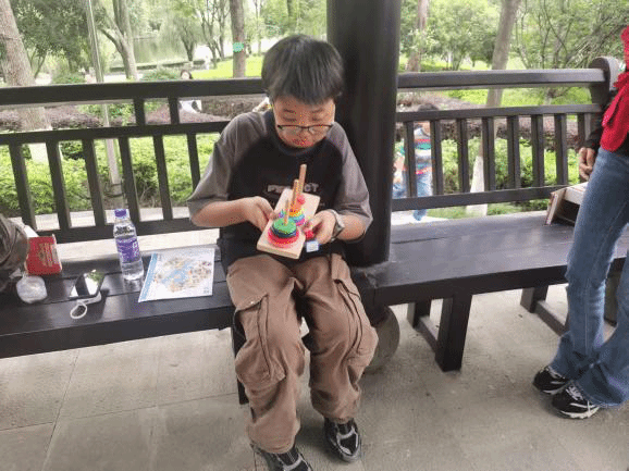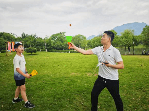 接下来每支亲子队伍手持定向地图,佩戴计时芯片,穿梭于校园的各个角落,寻找隐藏在南校区的“藏宝点”。在“拾‘色’筑塔”任务点,亲子二人需默契配合,手拉绳子末端,移动勾环将积木按“校友助力”“七彩筑塔”字样依次叠加 ;“色彩连连看”区域,孩子们和家长两两协作,专注地翻开草帽,寻找相同物品;“接‘彩’入框”游戏里,大家巧用道具,小心翼翼地将不同颜色的小球传接至指定框中……工作人员依据计时芯片记录的时间公布比赛成绩并为表现优异的队伍颁发奖励。
