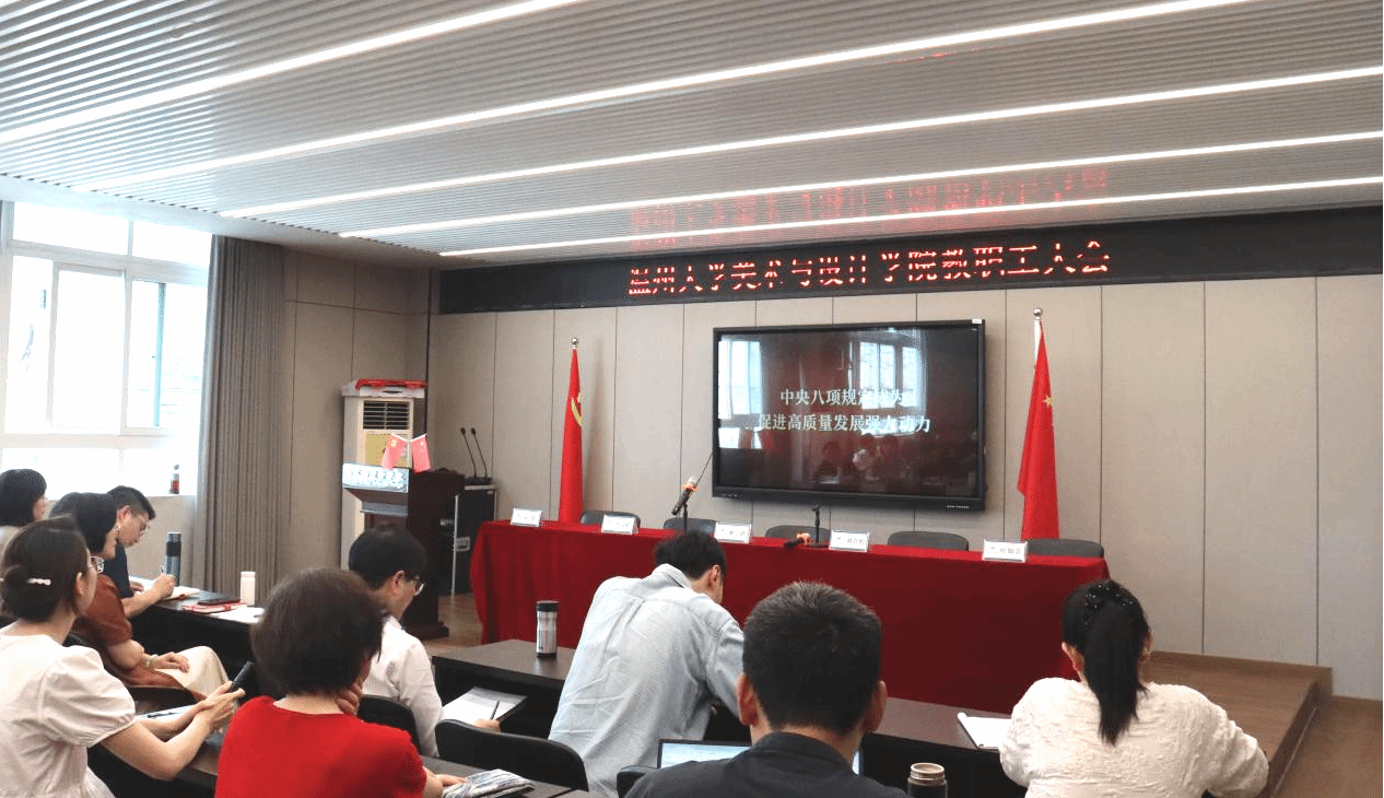 会前,全院教职工集中学习了中央八项规定相关视频内容,并观看了2025年保密公益宣传片《指尖的守护》。刘青松书记结合视频学习内容展开详细说明,强调要深入贯彻中央八项规定精神学习教育,持续加强学院作风建设,将相关要求落到实处。