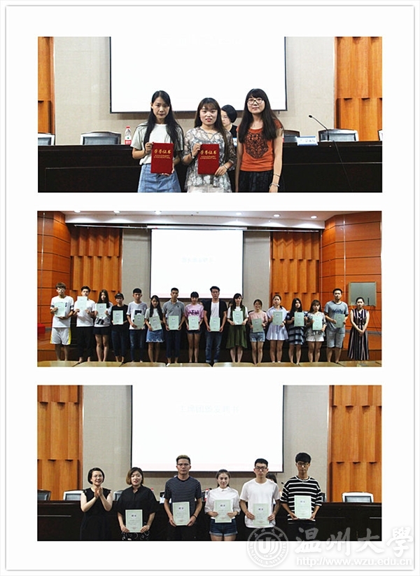 大会伊始,新任团副周瑶宣读2015-2016学年美院团委学生会荣获每月之星称号名单。第二项议程,由景老师给2015-2016学年荣获星级部门的部长们颁奖。第三项议程,由吴老师为前任各部门部长们颁发聘书。叶老师不仅给前主席团各成员颁发聘书,还一一握手祝贺他们顺利圆满完成这一学年的聘任工作。