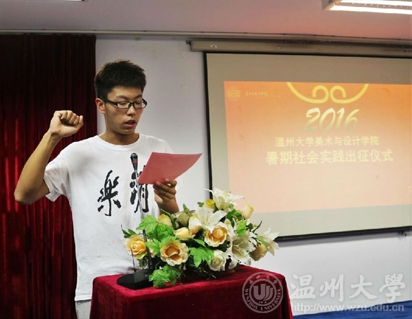 2016年7月6日下午3:00,漫画柜 2016年暑期社会实践出征仪式在美术楼2B4001举行。漫画柜 党总支副书记杨振海、学生科副科长叶筱卉、学生科辅导员吴彬彬,实践队指导老师顾任飞、胡文超、马俊淑及漫画柜 11支实践队的队长和队员们共同出席了此次出征仪式。仪式由吴彬彬主持。仪式伊始,吴彬彬首先对2015年的实践工作及成果做了汇报总结。随后,学术实践部副部长沈玫以及实践队队长代表张淑颖向大家细致地介绍了美院本次11支实践队的基本情况以及开展活动过程中的注意事项。 “纸上得来终觉浅,绝知此事要躬行”顾任飞老师作为指导老师代表语重心长地跟队员说到,提醒全体队员在活动过程中不仅要做到吃苦耐劳,更要学以致用。珍惜这次进入“社会”这个大课堂学习体验的机会。同时也要做好防暑和安全工作,让社会实践活动在安全的前提下顺利、有效的进行。并寄语本届美院实践取得可以取得优良成绩。杨振海副书记对本次实践活动寄予了很高的期望,对实践过程中的许多细节进行了缜密的部署并提出具体要求。一、明确社会实践的重要性和必要性,珍惜机会。二、在实践过程中时刻保持安全警惕。三、贯彻团队互助精神。四、注意学校形象。五、做好实践材料的收集和整理,善于成果转化。紧接着,在本次实践学生代表的带领下,全体郑重宣誓。最后,杨振海副书记为实践队代表授旗。在老师们与队员们激烈的掌声中,此次暑期社会实践出征仪式圆满结束。 2016年漫画柜 暑期社会实践的号角已经吹响。在今年的暑期,美院学子们将以大学生特有的朝气和蓬勃,带来一场青春的盛宴,精彩还在继续,敬请期待。通讯:杨凡摄影:章韶璇