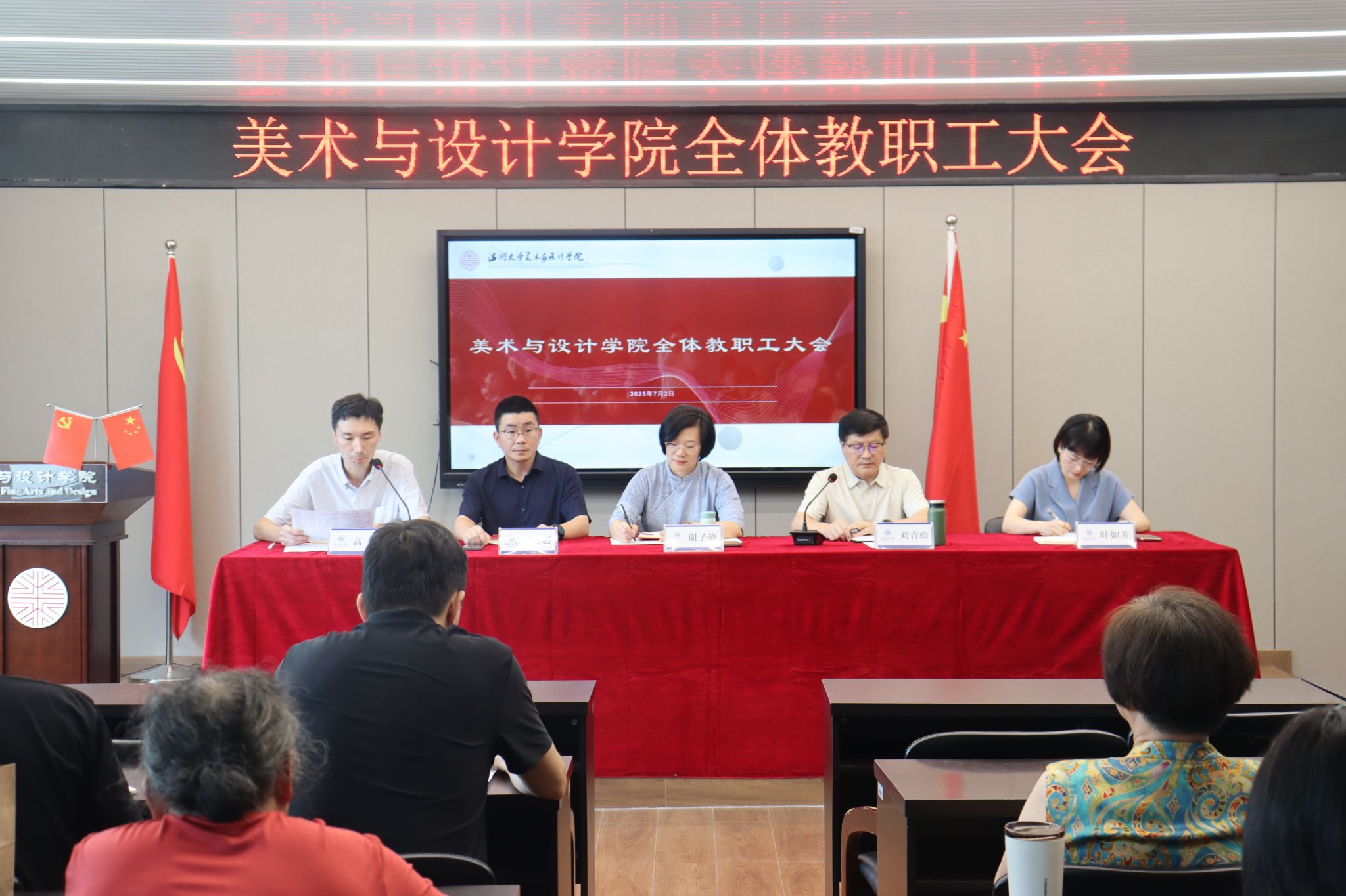 7月2日,在学院4001会议室召开漫画柜 全体教职工大会,学院领导班子及全体教职工参加本次会议,会议由学院党委书记刘青松主持。