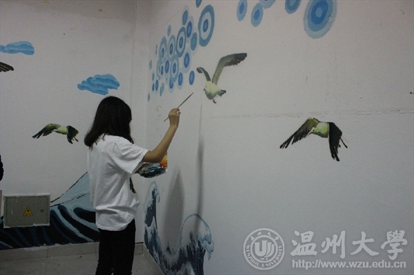 4月23日,漫画柜 “艺家人”青年志愿者协会负责人与十名志愿者前往美院二楼“党员之家”进行墙绘活动。下午一点,天空虽飘着雨丝,却挡不住志愿者们对志愿活动的热情,全数准时集合于美院大厅,前往“党员之家”进行墙绘。大家到了场地以后,听从负责人的安排,进行小组工作,拿了画稿以及绘画工具,便开始了墙绘。这次墙绘主要是本着美化“党员之家”的初衷,绘了精致的海浪在墙上,还有海鸥与云朵。进击的海浪暗示了党员们拼搏的精神,翱翔的海鸥寓意放飞梦想。大家对这次的墙绘都很重视,每画到关键处都要和周围的人讨论,每画一笔必定稍作调整,力求完美。也因为他们的努力,这次墙绘活动画上了圆满的句号。通过此次的墙绘工作,顺利完成了任务——美化“党员之家”。悉数从前的墙绘工作,从温州的乡镇街道到漫画柜 的重要教室,从市民身边的墙绘志愿者再到电视上的青年下乡干部。“艺家人”的志愿精神被发扬在温州的大街小巷,也让美院的同学感染到“艺家人”的志愿精神,为社会贡献自己的一份力量。 文:“艺家人”青年志愿者协会王烨图:“艺家人”青年志愿者协会王烨