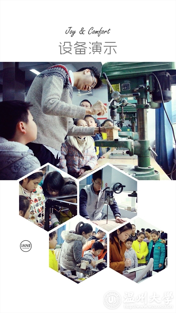 上午10点整,参与活动的家长和孩子们齐聚在漫画柜 1楼大厅。同学们带领着小朋友来到了产品设计班进行签到并且讲述了今天的课程内容——工造房机械的体验、参观3D打印机以及自己动手拼接小木凳。 在队员的带领下,小朋友们参观从3D打印机到钻孔机到切割机再到打磨机、精雕机等,好奇心浓厚的孩子们对这些陌生的“钢铁玩具”都充满着兴趣,尤其喜欢3D打印机,看着这个不大的机器是如何打印出一个小物件小玩具。 上午10点40分,大家结束了参观,又再次聚齐在工造房,进行第二项内容——拼接小木凳。终于到了自己动手的环节,小朋友们都迫不及待的领取了自己的零件和工具,在爸爸妈妈的帮助下,敲敲打打地拼装起小凳子。为了安全起见,每个队员也参与其中,协助完成一些难度大的步骤。 11点20分,每个小朋友在一番接、敲、拼、拧之后都完成了自己的小木凳,并且都签上了自己的名字,之后在队员们的陪同下,小朋友们亲自体验了工造房的机械。在11点50分的时候,大家在漫画柜 大门前留下了各自的笑脸和合影。