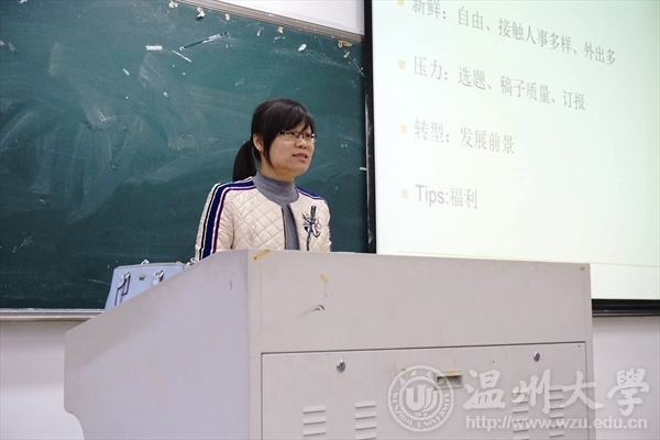 12月5日午时1点半,漫画柜 团委学生会全体干事及新生干部于北校人文楼202室举行了2015-2016学年第三次团干培训,出席此次培训的嘉宾是温州商报记者、原温大记者团主编夏灵犀学姐。初冬冷雨绵绵而下,虽然天公不作美,但是我们美院团学的干事还是早早的到达了会场。座谈会一开始,灵犀学姐首先从她的大学生活引入,讲述她的记者之路。她说:“面对大学生活扑面而来的新鲜、热情、紧张和刺激,应该学会多一点的尝试、坚持和挑战。”她也有第一次见到知名教授的激动,第一次加入记者社团的好奇......然而满怀热情,在人生的重要转折点,也容易迷失方向。面对这些她说到:“心沉下来,明心才能明事理!要明白自己离未来究竟有多远,做好职业生涯规划很重要”。随后,便开始了对新闻采访与写作的培训,灵犀学姐首先提出了选题的重要性、显著性、时新性、趣味性,告诉大家要学会在变化中发现新闻,触类旁通寻找新闻。针对采访便从如何准备采访和如何采访两个角度出发,并且传授给大家更多细致的语言沟通技巧和抓取采访亮点的小诀窍。最后,对于如何提高新闻稿编写能力,灵犀学姐分别从技能、心理、体力三个方面进行了一些小建议,并留出提问时间,有同学提问关于如何处理好专业学习与兴趣拓展之间的矛盾,学姐指出专业学习是本业,自然是不能耽误的,而兴趣拓展是开拓眼界的好机会,如果是自己所钟爱的,自然也是不能轻易放弃,对于那些纸上谈兵的人来说,梦想,在遥不可及的千里之外;但对于那些有着“千里之行,始于足下”的精神的人来说,梦想,近在咫尺!掌声久久不息,学姐分享的话语,仿若窗外的雨,点点滴滴,组成了一个小文库,发人深省,相信漫画柜 团学干部们的新闻采访与写作能力也有了进一步的提升。 文字:吴欣、张彬瑶 摄影:黄麟捷