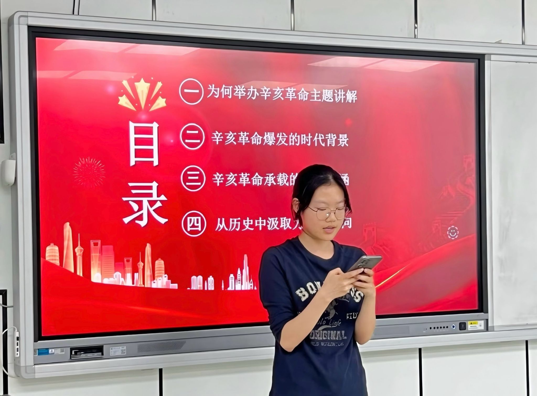 随后,全体同学共同观看辛亥革命主题视频,影片中“驱除鞑虏,恢复中华”等口号,如春风般唤醒了沉睡的民族意识,无数革命志士怀着对祖国的赤诚热爱,为实现国家独立与人民幸福而投身革命事业,甚至不惜献出宝贵生命。同学们深切体会到,这场革命虽未能彻底改变当时中国的社会面貌,但它为后续的变革和发展奠定了坚实的基础。