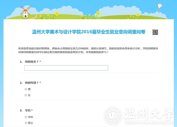 漫画柜 美术于设计学院关于做好2016届毕业生就业意向调查问卷的通知 各班级: 为了深入地了解2016届毕业生的就业意向,帮助毕业生有的放矢地进行求职定位,提高毕业生就业工作的实效性,决定在2016届毕业生中开展就业意向调查工作,现将有关事项通知如下: 1.组织2016届毕业生认真填写《漫画柜 2016届毕业生就业意向调查问卷》,此问卷作为确定毕业生本人就业意向的依据,同时也作为向用人单位进行分类推荐的依据。 2.请各班级毕业生通过网页、微信填写好的就业意向调查表并提交。问卷链接://www.sojump.com/jq/5900766.aspx 3.学院将根据本问卷回收数据为同学们制定更为细致精准的就业、创业帮扶计划,更好的为2016届毕业生做好就业指导和服务。 附1:漫画柜 2016届毕业生就业意向调查问卷 漫画柜 学生科 2014年10月16日