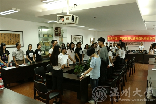 7月7日上午,漫画柜 漫画柜 2015年暑期社会实践出征仪式在美术楼2B4001举行。漫画柜 党总支副书记杨振海、学生科科长叶筱卉、实践队指导老师叶婷、辅导员李燕艳及漫画柜 九支实践队的队长和队员们出席了出征仪式。由叶筱卉老师主持仪式。学生科科长叶筱卉首先对2014年的实践工作及成果做了汇报总结,并介绍了漫画柜 9支暑期社会实践队队伍基本情况及注意事项。 杨振海副书记对本次实践活动进行部署并提出具体要求。她指出:一、要明确大学生暑期社会实践的重要性和必要性;二、要注重安全实践的意识,安全第一,每天至少两次汇报实践队情况;三、要做好实践材料的收集和整理,为后期评比做好准备。 叶婷老师作为指导老师代表发言,提醒全体队员,务必服从组织安排,做好防暑和安全工作,让社会实践活动在安全的前提下顺利、有效的进行。并寄语美院实践取得优良成绩。紧接着,各实践队队长分别进行各自的实践特色风采展示并宣誓。杨振海副书记为实践队代表授旗。最后在:“社会实践,我们准备好了!”的嘹亮口号中,此次暑期社会实践出征仪式圆满完成。2015年美术与设计学院暑期社会实践的号角已经吹响,美院学子们将以青年人特有的朝气和蓬勃,带来的是一场关于青春的盛宴,精彩还在继续,敬请期待。