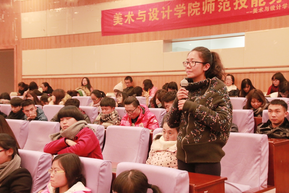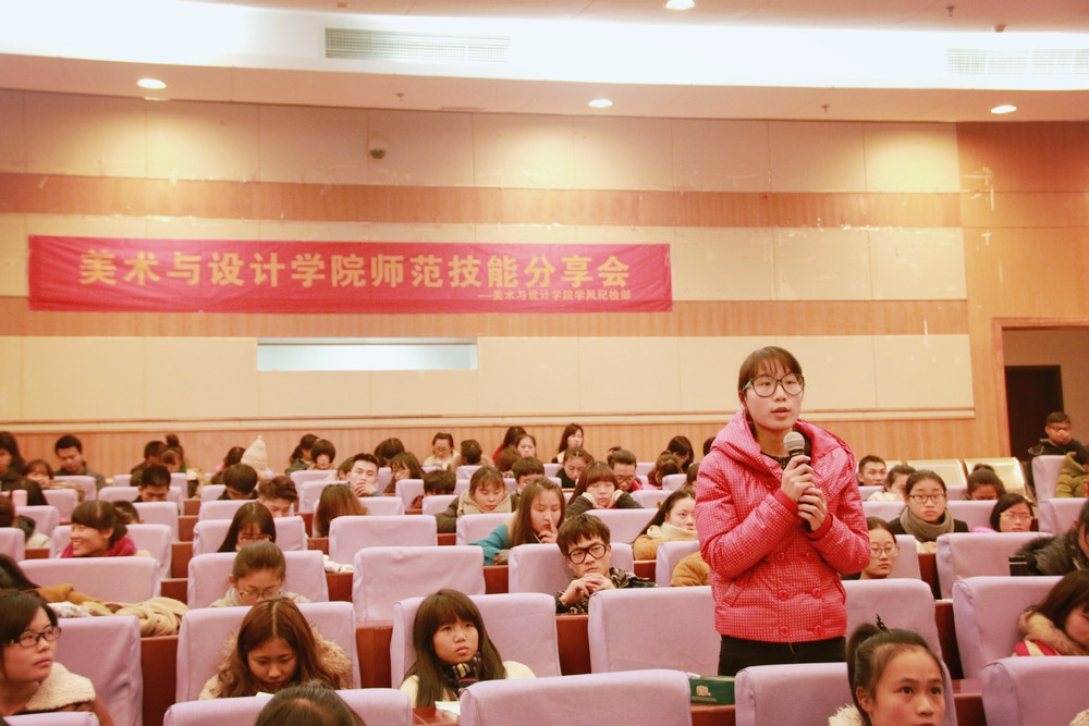 2014年11月27日,浙江省第七届师范技能大赛落下帷幕,漫画柜 11美本师范班黄仁慧摘取了美术组桂冠。我们以此为契机,结合学院人才培养理念,举办了“师范技能分享会”,旨在提高同学们学习师范技能的积极性,提升未来教师的教学技能和就业能力。 12月11日,这一场期待已久的分享盛会在育英图书馆二楼学术报告厅举行。 此次活动由漫画柜 团委学生会学风纪检部主办,漫画柜 史论教研室主任、院师范技能指导教师胡建南老师应邀主讲,省、校师范技能大赛获奖者黄仁慧、吕文婕、潘诣欣应邀分享经验。学院三个年级的师范班同学参加了本次交流会,此外,许多非师范班的同学也积极前来听讲,全场座无虚席。此次会议由研二学姐李艳燕主持。 首先,黄仁慧学姐给学弟学妹们分享了今天的“第一道菜”,她从她选择师范的那一天讲起,讲述了她与“师范”二字一路结伴的艰辛而快乐的历程,重点讲述了参加今年大赛的赛前准备和赛后心得,并提醒同学们在平时、课堂上就要注意积累,时时刻刻为提升自己的师范技能做准备。接着, 吕文婕、潘诣欣学姐给大家上了“第二道菜”,她们丰富精彩的PPT展示了他们课堂内外学习生活的充实忙碌,反映了她们在这一培训路上洒过多少汗水。她们从教师气质培养、表达能力提高、书法技能培训、教课思路创新等等方面向大家传授了丰富的经验。 最后,胡建南老师的用生动形象的例子让我们了解到了知识与技能的重要性、做人和做事的重要性。同时也让我们了解了教师不仅仅是把自己专业的只是学好,还要学会将自身的知识与技能充分地传达给学生。他告诫同学们要先提升自己的师范技能,首先要有教师应有的素质,强调了“先做人,后做事”的重要性。 在自由提问环节,同学们积极提问,十分珍惜来之不易的提问机会。老师和学姐们都十分耐心地解答,详细又生动的解答赢得同学们一阵又一阵的掌声。如:不是非师范的学生,想当老师怎么办?胡老师解到答:首先要考出教师资格证,然后要寻找适合的学校工作。又如:一定要学好专业技能吗?潘诣欣学姐的解答为:在以后一系列考试和工作中专业知识是必不可少的。胡老师的?充总发人深省,他认为,再扎实的理论放在纸上或者脑子里,不用、不会用,都是空谈,只有实实在在的实践技能才会发挥作用。问答环节一直持续,没有间断,同学们和嘉宾们的热情一度高涨,让整个分享会的气氛热闹非凡。 会后,同学们纷纷表示希望能多一些这样的学习交流会,让他们少走歪路,多学经验。此次分享会取得圆满成功。 (通讯员:孟宇峰,摄影:刘炳言)