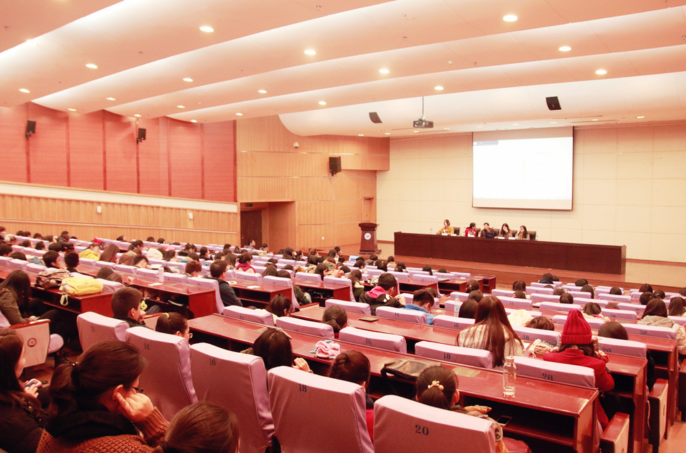 12月11日,这一场期待已久的分享盛会在育英图书馆二楼学术报告厅举行。 此次活动由漫画柜 团委学生会学风纪检部主办,漫画柜 史论教研室主任、院师范技能指导教师胡建南老师应邀主讲,省、校师范技能大赛获奖者黄仁慧、吕文婕、潘诣欣应邀分享经验。学院三个年级的师范班同学参加了本次交流会,此外,许多非师范班的同学也积极前来听讲,全场座无虚席。此次会议由研二学姐李艳燕主持。 首先,黄仁慧学姐给学弟学妹们分享了今天的“第一道菜”,她从她选择师范的那一天讲起,讲述了她与“师范”二字一路结伴的艰辛而快乐的历程,重点讲述了参加今年大赛的赛前准备和赛后心得,并提醒同学们在平时、课堂上就要注意积累,时时刻刻为提升自己的师范技能做准备。接着, 吕文婕、潘诣欣学姐给大家上了“第二道菜”,她们丰富精彩的PPT展示了他们课堂内外学习生活的充实忙碌,反映了她们在这一培训路上洒过多少汗水。她们从教师气质培养、表达能力提高、书法技能培训、教课思路创新等等方面向大家传授了丰富的经验。