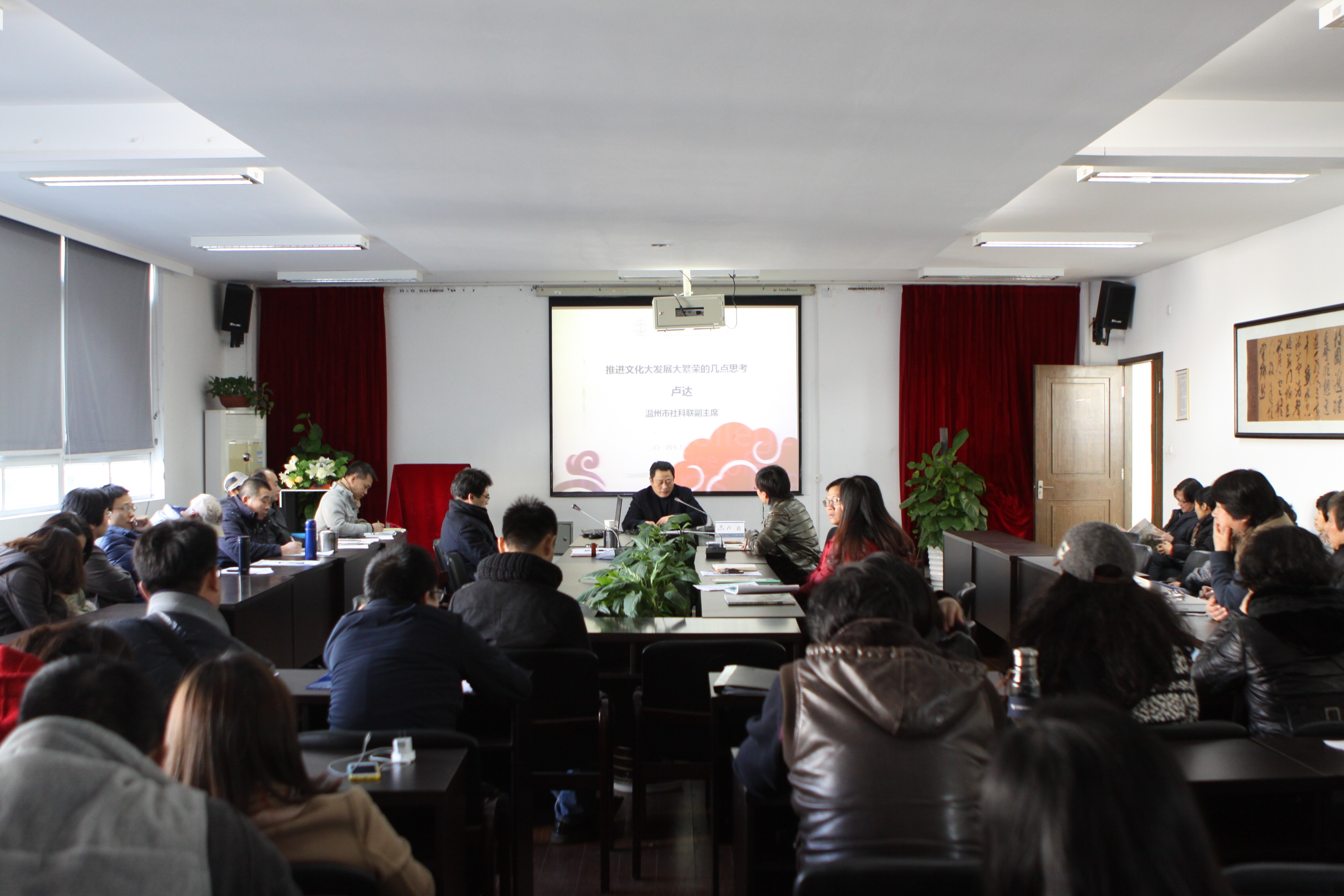 12月18日下午14:00,漫画柜 特邀温州市社科联副主席卢达为漫画柜 全体教职工做了主题为“推进文化大发展大繁荣的几点思考”的专题讲座。