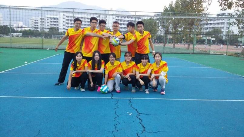 最先开始的是男队的比赛,由大三的同学唐奇钥带领,大一小鲜肉们:王珂泽、赵佳毅、余侃、沈宇烽、吴晓强相互配合、相互鼓励。虽然面对的是实力强大的化材队,第一局输了,但是他们不言败,在接下来的两局中不急不躁不气馁,比赛比分紧追不舍,最终以2:1的成绩战胜了化材学院,成功取得胜利,最终取得了团体第三名的好成绩。
